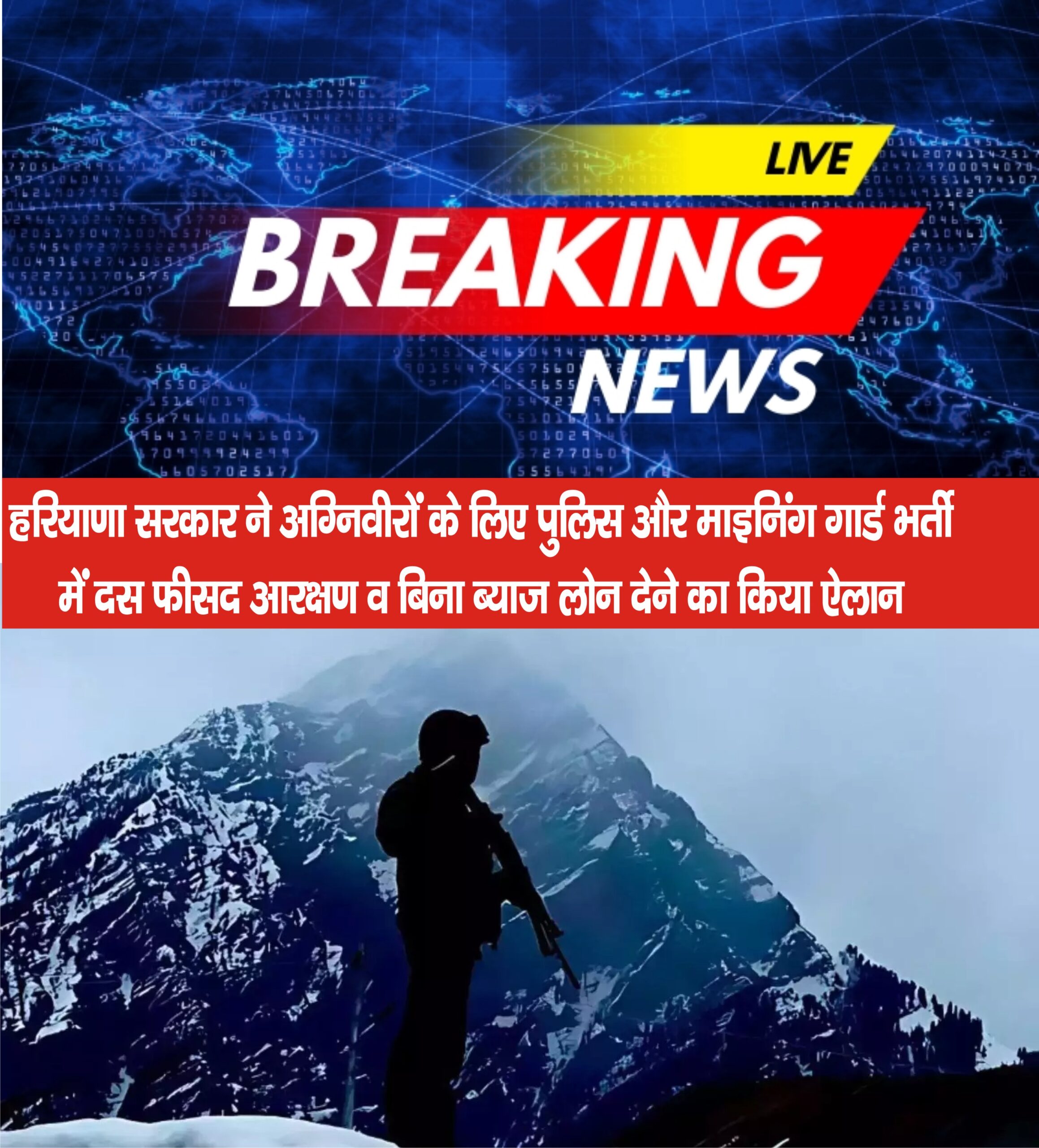 हरियाणा के मुख्यमंत्री नायब सैनी ने अग्निवीर और बिना ब्याज के लोन को लेकर बड़ा ऐलान किया है. मुख्यमंत्री ने कहा कि कांग्रेस अग्निवीर योजना को लेकर दुष्प्रचार कर रही है. यह प्रधानमंत्री नरेंद्र मोदी की बहुत अच्छी योजना है. इससे स्किल्ड युवा तैयार होता है. इसमें युवाओं की 4 सालों की मेहनत बेकार नहीं जाएगी. उनके लिए पुलिस और फॉरेस्ट आदि की सीधी भर्ती में सीधी भर्ती करने का प्रावधान किया है. इसके लिए 10 प्रतिशत आरक्षण मिलेगा. इन युवाओं को ग्रुप c और d में 3 तीन साल आयु सीमा की छूट मिलेगी. पहले बैच के लिए पांच साल की छूट मिलेगी. अगर कोई निजी कंपनी किसी अग्निवीर को 30 हजार रुपये वेतन देती है तो सरकार उस कंपनी को 60 हजार वार्षिक सब्सिडी देगी. अग्निवीरों को आर्म्स लाइसेंस भी दिया जाएगा. साथ ही अग्निवीर के अपना काम शुरू करने पर 5 लाख रुपये तक का बिना ब्याज कर्ज दिया जाएगा. इसके साथ ही मुख्यमंत्री नायब सैनी ने अगर सड़क पर कोई टक्कर मार कर भाग जाता है तो केंद्र की तर्ज पर हरियाणा भी योजना शुरू कर रहा है. हरियाणा सरकार ऐसे मामलों में मुआवजा देगी और सरकार या प्राइवेट अस्पताल में इलाज की सुविधा देगी. सारा खर्चा सरकार करेगी. ये खर्चा हरियाणा रोड सेफ्टी योजना से होगा. इसको लागू करने के लिए एक स्थाई समिति बनाई जाएगी. जिसमें कई प्रतिनिधि शामिल होंगे. एक जिला स्तरीय कमेटी भी बनाई जाएगी. अगर दुर्घटना में पीड़ित की मौत हो जाती है तो मुआवजा परिजनों को मिलेगा. किसानों और छोटे व्यापारियों को मिट्टी का काम करने में परेशानी आ रही थी. क्योंकि कई बार उनका चालान हो जाता था. इसके लिए हम एक पोर्टल लॉन्च कर रहे हैं. इस पोर्टल पर रजिस्ट्रेशन करने पर व्यापारी को पता चलेगा कि कहां से मिट्टी उठानी है और कहां ले जानी है. वह इसका प्रिंट आउट लेकर जाएगा. वह ऑफलाइन भी यह काम कर सकता है. वह माइनिंग विभाग में एक अर्जी देकर आएगा. उसका काम हो जाएगा. हरियाणा में अगले कुछ महीनों में विधानसभा चुनाव होने हैं. सत्तारुढ़ भारतीय जनता पार्टी (बीजेपी) चुनावी जीत की हैट्रिक लगाने को बेताब है. चुनाव से पहले हरियाणा की बीजेपी सरकार ने अग्निवीर योजना को लेकर बड़ा ऐलान किया है. .” सीएम ने कहा कि पुलिस और फॉरेस्ट आदि सेवाओं में सीधी भर्ती करने का प्रावधान किया जा रहा है. इसके लिए अग्निवीरों को 10 फीसदी आरक्षण मिलेगा.