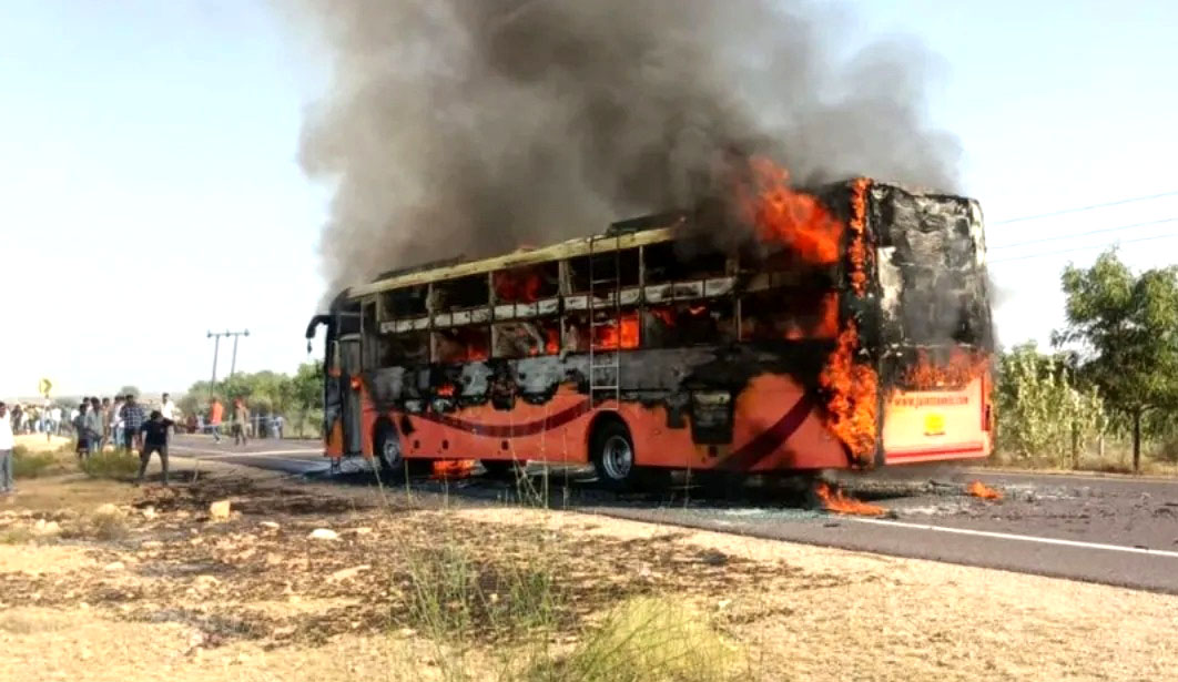राजस्थान: जैसलमेर-जोधपुर हाईवे पर चलती बस में लगी आग, 12 की मौत