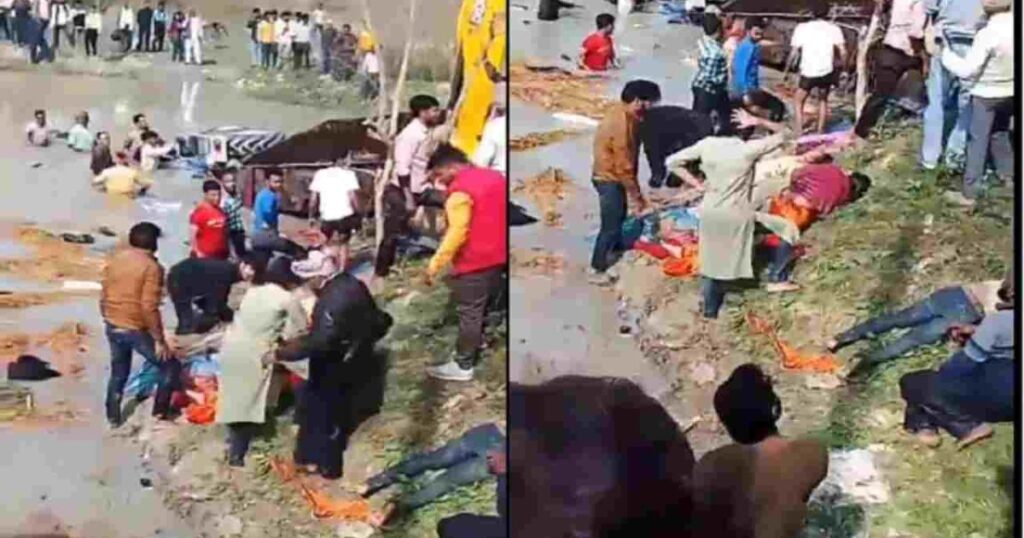 समृद्धि न्यूज। पूर्णमासी पर गंगा स्नान के लिए जा रहे श्रद्धालुओं से भरी ट्रैक्टर ट्रॉली तालाब में पलट गई। जिसमें 22 लोगों की मौत हो गई है। बदायूं हाईवे पर दरियागंज के पास गंगा स्नान को जा रहे श्रद्धालुओं का ट्रैक्टर सडक़ किनारे तालाब में गिर गया। जिसमें 54 लोग सवार थे। मृतकों के परिवारों का रो-रोकर बुरा हाल हो गया। घटना स्थल पर लोगों की भीड़ लग गयी। आनन-फानन में प्रशासन घटना स्थल पर पहुंच गया। सीएम योगी ने कासगंज में हुए सडक़ हादसे का संज्ञान लिया है और हादसे पर गहरा दुख जाहिर किया है। सीएम योगी ने मृतकों के शोक संतप्त परिजनों के प्रति संवेदना व्यक्त ही है और मृतकों के परिजनों को 2-2 लाख रुपये और गंभीर रूप से घायलों को 50 हज़ार रुपये सहायता राशि देने के निर्देश दिए हैं। सीएम ने सभी घायलों का समुचित निशुल्क उपचार कराने के भी निर्देश दिए हैं।