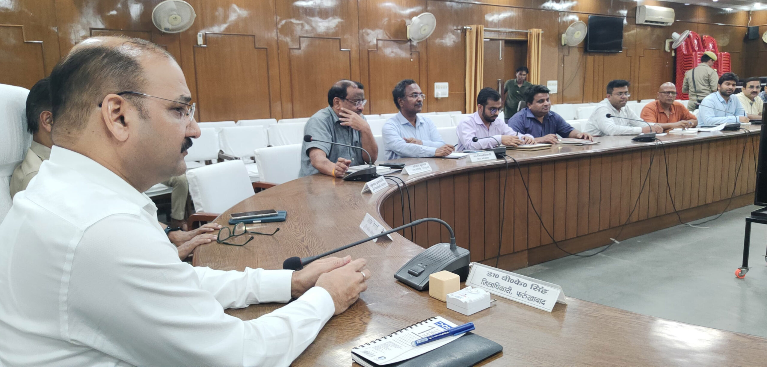 फर्रुखाबाद, समृद्धि न्यूज। जिलाधिकारी डॉ0 वी0के0 सिंह की अध्यक्षता में शहर में लगने वाले जाम व पार्किंग के संबंध में व्यापार मंडल व जिला उद्योग बन्धु के पदाधिकारियों के साथ बैठक का आयोजन कलेक्ट्रेट सभागार फतेहगढ़ में किया गया।