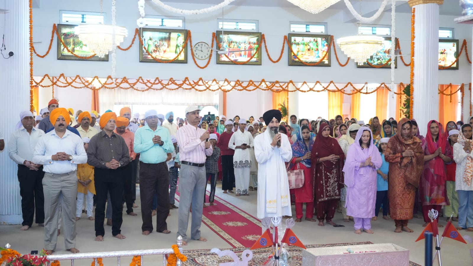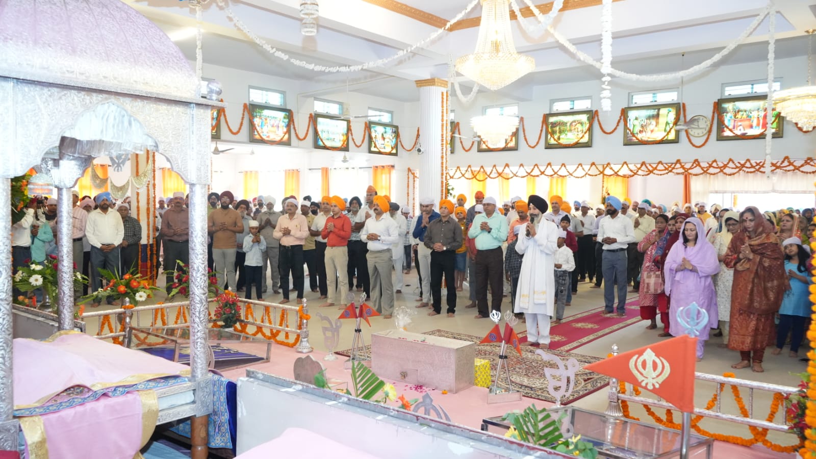 फर्रुखाबाद, समृद्धि न्यूज। सिख लाइट इन्फैंट्री रेजिमेंटल सेंटर फतेहगढ़ स्थित गुरूद्वारा में महान संत, सिख पंथ के संस्थापक एवं प्रथम गुरु श्री गुरु नानक देव जी का 556वां प्रकाश पर्व धूमधाम से मनाया गया। इस मौके पर गुरुद्वारा को झालरों से सजाया गया और दीवान सजा। इस अवसर पर हजूरी रागी जत्था ने शबद कीर्तन किया, जिसको सुनकर संगत निहाल हुई। वक्ताओं ने गुरुनानक जी के जीवन पर विस्तार से प्रकाश डाला और उनके बताए गए मार्ग पर चलने का आवाह्न किया।महान संत, सिख पंथ के संस्थापक एवं प्रथम गुरु श्री गुरु नानक देव जी के 556वें प्रकाश पर्व के पावन अवसर पर जिलाधिकारी आशुतोष द्विवेदी एवं पुलिस अधीक्षक आरती सिंह के अलावा राजपूत कमाण्डेंड, एनसीसी सीओ, सैन्य हॉस्पिटल के ऑफिसर, एपीएस प्रिंस्पिल, सिविल जज ने सिख लाइट इन्फैंट्री रेजिमेंटल सेंटर, फतेहगढ़ स्थित गुरूद्वारा में समारोह में शामिल होकर प्रसाद ग्रहण किया। इस मौके पर गुरूद्वारे में कीर्तन हुआ और दीवान भी सजाया गया। शबद कीर्तन सुनकर मौजूद संगत निहाल हुई। प्रकाश उत्सव को लेकर गुरुद्वारा में चल रहे भजन, कीर्तन को सुनने के लिए बड़ी संख्या में गुरु प्रेमी गुरुद्वारा पहुंचे हुए थे। गुरुद्वारा में गुरु प्रेमियों की भारी भीड़ रही। हर कोई गुरु की भक्ति में डूबा हुआ रहा। सतनाम वाहेगुरु के उद्घोष से पूरा माहौल गुरु नानक देव जी महाराज के भक्ति में रम चुका था। बच्चे, बड़े सभी गुरु के भजन की भक्ति में गोते लगा रहे थे, गुरुद्वारा में बड़ी संख्या में महिला पुरुष गुरु प्रेमियों कि भारी भीड़ रही। भजन कीर्तन के बाद सभी ने गुरु साहब के समक्ष अरदास लगाया। इस दौरान गुरुद्वारे में लंगर का भी आयोजन किया गया, जो कि देर शाम तक जारी रहा। गुरुद्वारे में हजारों की संख्या में पहुंची संगत ने माथा टेका और आशीर्वाद लिया। वक्ताओं ने गुरुनानक जी के जीवन पर विस्तार से प्रकाश डाला और उनके बताए गए मार्ग पर चलने का आवाह्न किया।इस मौके पर स्टेशन कमांडर व सेंटर कमांडेट सिखलाइट इनफैंट्री सेंटर के ब्रिगेडियर मनीष जैन के अलावा अधिकारियों व उनके परिजनों ने पहुंचकर गुरु के दरवार में माथा टेंका आशीर्वाद लिया।