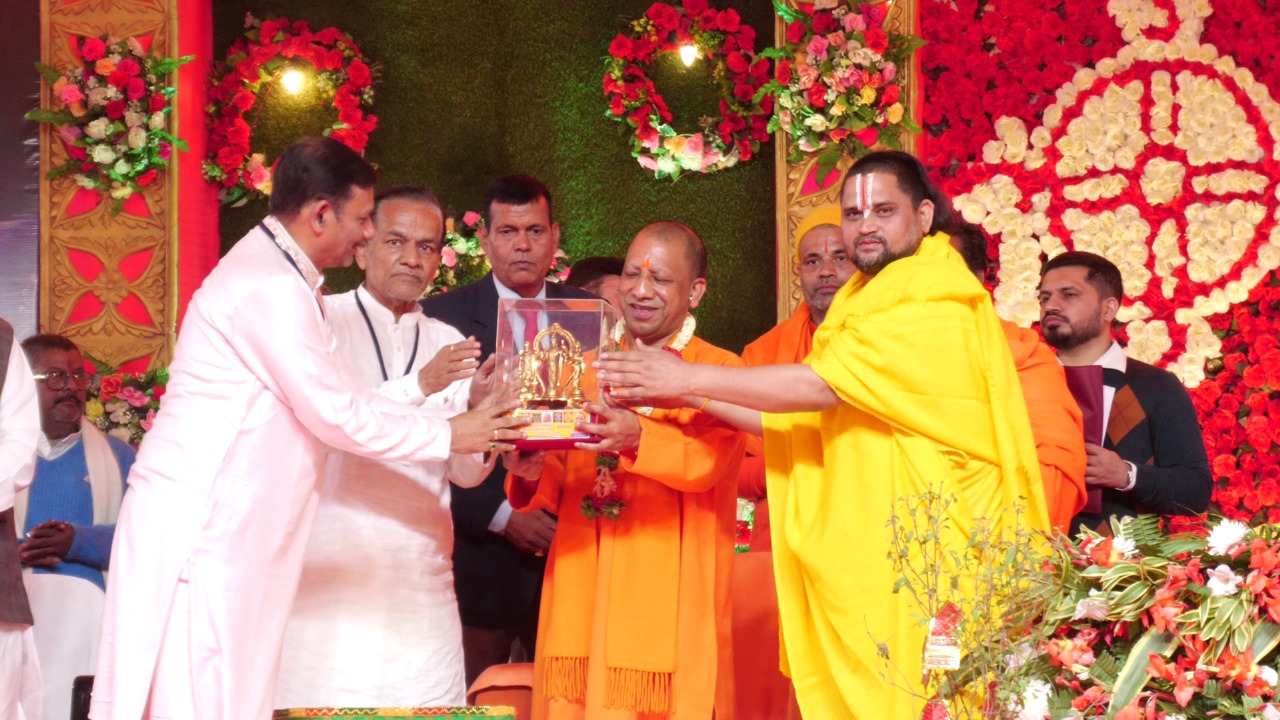 समृद्धि न्यूज़ अयोध्या। रामनगरी की सिद्धपीठ अशर्फी भवन में पीठाधीश्वर जगतगुरु रामानुजाचार्य स्वामी धराचार्य जी महाराज के संकल्प से विश्व शांति राष्ट्र रक्षा पर्यावरण शुद्धि जीव मात्र के कल्याण के लिए 54 कुंडीय पंचनारायण महायज्ञ एवं अष्टोत्तर सत श्रीमद् भागवत महापुराण की कथा में शुक्रवार को पहुंचे मुख्यमंत्री योगी आदित्यनाथ ने सर्वप्रथम भगवान लक्ष्मी नारायण का दर्शन कर सिद्ध पीठ को नमन किया,यज्ञ में संकल्पपूर्वक विभिन्न प्रकार की औषधियां से आहुति प्रदान किया तथा कथा मंडप में साल उड़ाकर और माला पहना कर जगतगुरु रामानुजाचार्य स्वामी धराचार्य जी महाराज का अभिनंदन किया।समारोह को संबोधित करते हुए मुख्यमंत्री योगी आदित्यनाथ ने कहा कि अशर्फी भवन पीठ के पूर्व आचार्य से लेकर के वर्तमान के आचार्य तक राष्ट्र रक्षा पर्यावरण एवं मानव कल्याण के लिए सदा सुंदर कार्य करते रहे हैं।इस श्रृंखला में पूज्य जगद्गुरु के द्वारा यह सुंदर कार्य किया जा रहा है,इसके लिए मैं स्वामी श्रीधराचार्य महाराज का अभिनंदन करता हूं।उन्होंने कहा कि यज्ञ,पूजा,पाठ और धार्मिक आयोजन सनातन धर्म का स्तंभ है।यह एक ऐसी संस्कृति है जो सभी के कल्याण की कामना करती है।यह अपना है और यह पराया है,यह गणना संकुचित विचारधारा की है।