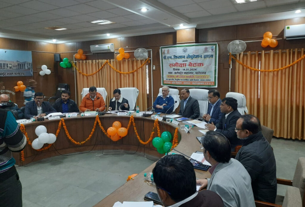 कलेक्ट्रेट सभागार में प्रधानमंत्री किसान सेचुरेशन ड्राइव की समीक्षा बैठक का आयोजन किया गया। जिसकी अध्यक्षता अपर मुख्य सचिव नियुक्ति व कार्मिक/कृषि विभाग उ0प्र0 शासन डॉ0 देवेश चतुर्वेदी ने की।