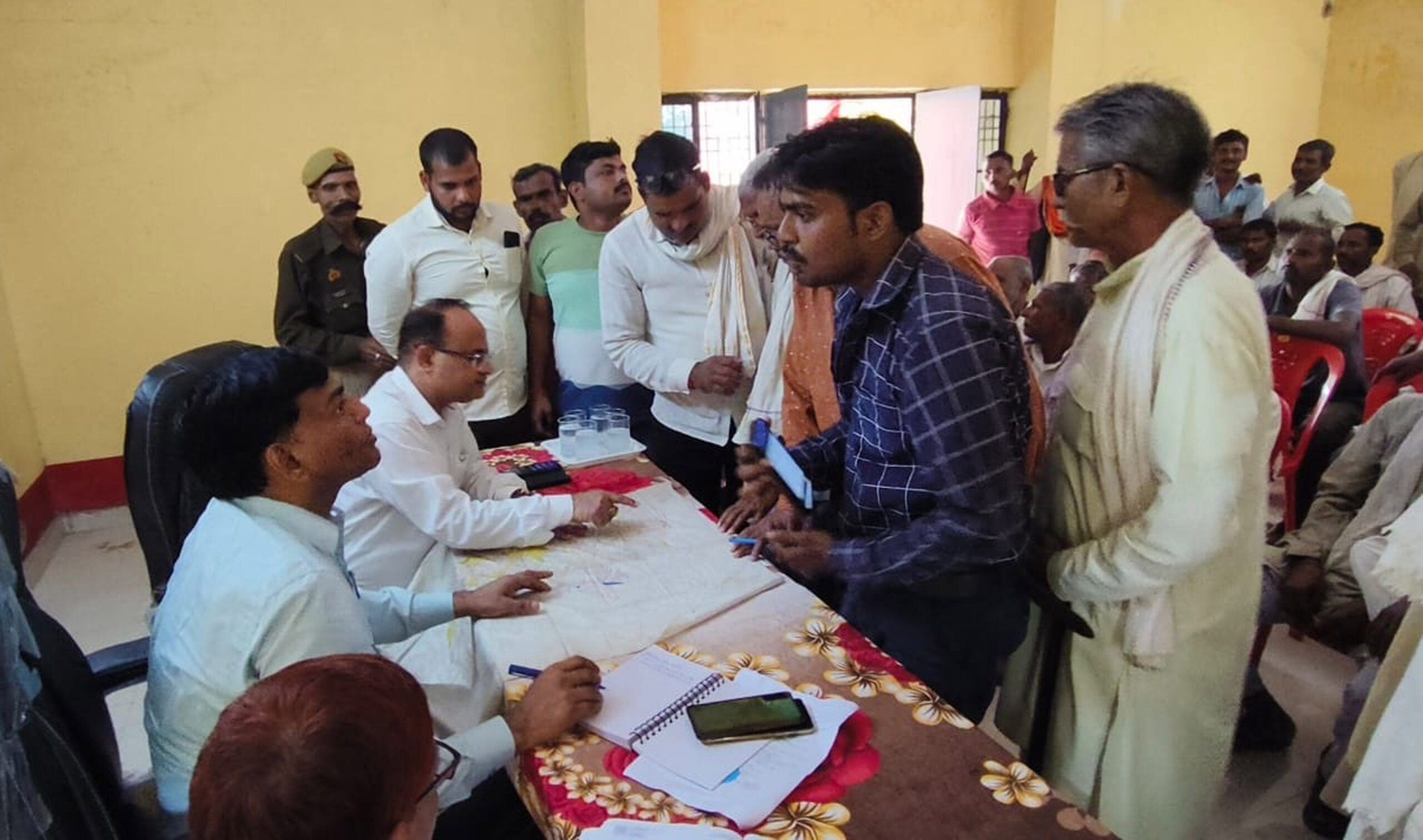 अमृतपुर, समृद्धि न्यूज। चकबंदी कार्यों में प्रगति एवं कृषकों की समस्याओं के निस्तारण के लिए चकबंदी आयुक्त उत्तर प्रदेश लखनऊ तथा जिला अधिकारी के निर्देश के क्रम में ग्राम पंचायत गुडेरा में ग्राम चौपाल का आयोजन किया गया। जिसमें अपर जिला अधिकारी सुभाष चन्द्र प्रजापति, एसडीएम यदुवंश वर्मा, सीओ चकबंदी उमाशंकर ने पहुंचकर समस्याओं को सुना। जिसमें नेत्रहीन बलराम पुत्र फतेह सिंह ने बताया कि उनकी लेखपाल के द्वारा गलत पैमाइश कर खेत कम नापा गया। कुमारपाल पुत्र राजाराम ने बताया कि 16 डिसमिल से अधिक खेत उनका कम है। विधवा उषा देवी ने बताया कि अधिकारियों के द्वारा गलत पैमाइश कर खेत नदी में नाप दिया गया। उसको सहारा देने वाला कोई नहीं है। वही मीटिंग के दौरान सीमा विवाद पर अधिक शिकायतें आईं। जिसमें अपर जिलाधिकारी ने तत्काल टीम गठित कर सीमा की पैमाइश करवाने के निर्देश दिए। कहा जल्द ही विवादों का निस्तारण कराया जाएगा। कहां कि जिन व्यक्तियों की विरासत नहीं बनीं है। वह तुरंत बनवा लें। लेखपाल को गांव में रहकर कार्य करने के निर्देश दिए। वहीं अपर जिला अधिकारी ने मीटिंग के दौरान बताया कि मुख्यमंत्री बाल कल्याण योजना के तहत जिन बच्चों के माता-पिता की मृत्यु कोरोना काल में मृत्यु, सामान्य मृत्यु व एक्सीडेंट मे मौत हुई है। उनके बच्चों को पढऩे के लिए अनुदान देती जो ग्रामीण इस योजना में लाभ में आ रहे हैं। वह तुरंत आवेदन करें लाभ दिलाया जाएगा।