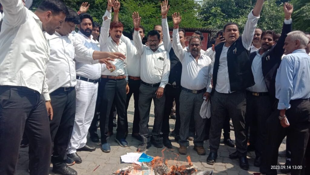 अधिवक्ताओं ने प्रदेश सरकार का फूंका पुतला