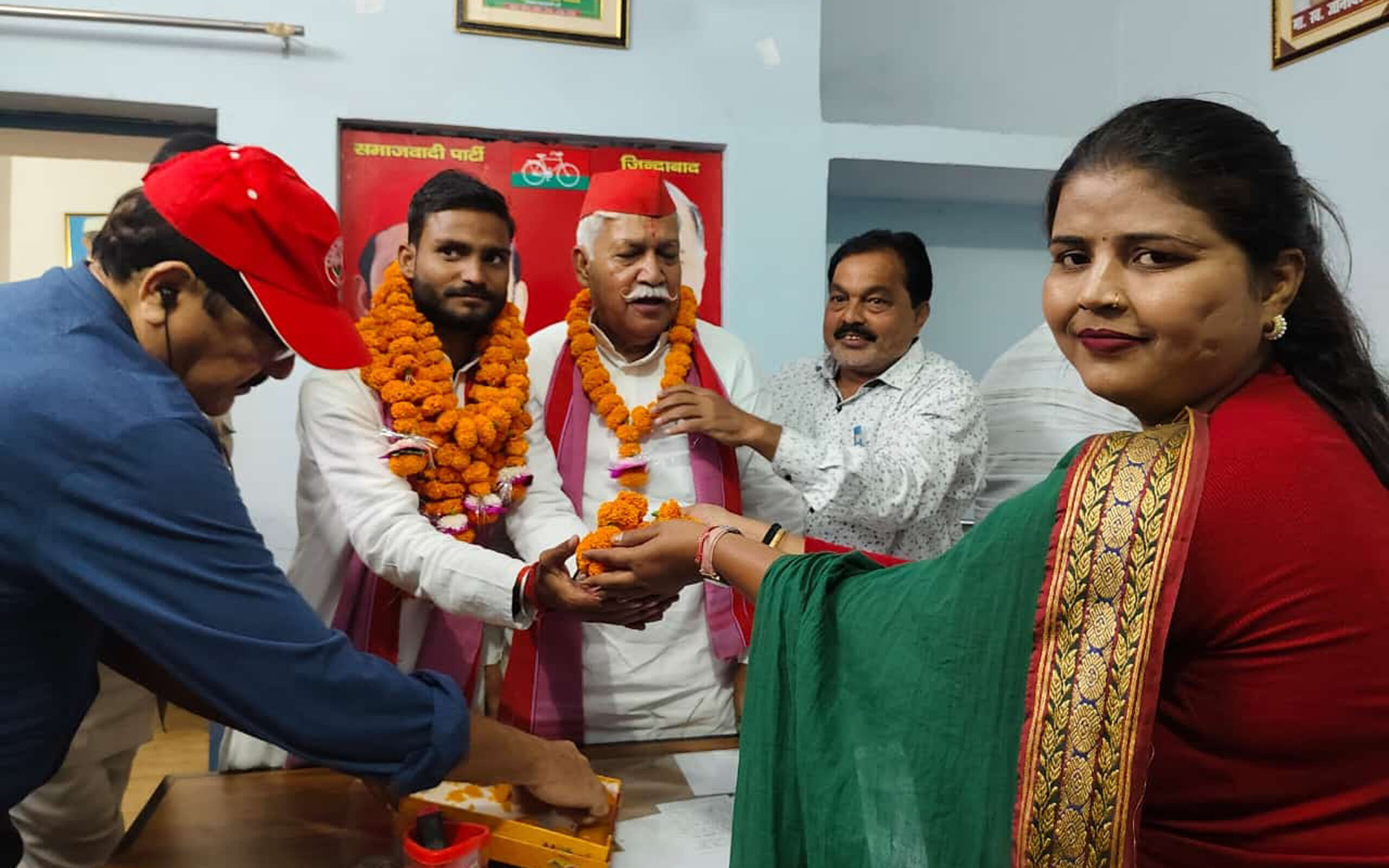 सपा कार्यालय पर अखिल कठेरिया का हुआ स्वागत