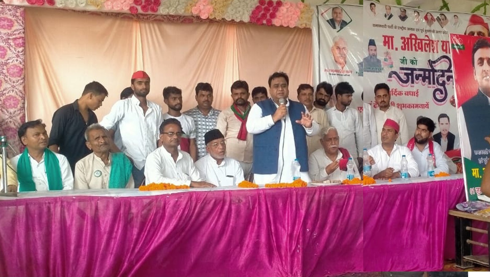 नवाबगंज, समृद्धि न्यूज। डॉ0 जितेंद्र सिंह यादव दर्जनों समर्थकों के साथ सपा के राष्ट्रीय अध्यक्ष अखिलेश यादव का जन्मदिन मनाने नवाबगंज पहुंचे। कस्बा नवाबगंज में समाजवादी पार्टी के नेता डॉ0 जितेंद्र सिंह यादव अपने काफिले के साथ पहले गांव नया गनीपुर बंजारा बस्ती में वली मोहम्मद कल्लू के यहां एक पारिवारिक कार्यक्रम में भाग लेने पहुंचे। जहां लोगों ने उनका फूल-मालाओं के साथ गर्मजोशी से स्वागत किया। वहीं समाजवादी पार्टी के जिला अध्यक्ष चंद्रपाल सिंह यादव, जिला महासचिव इलियास मंसूरी, जिला उपाध्यक्ष सुरेंद्र सिंह गौर, समाजवादी पार्टी के जिला प्रभारी डॉ0 नवल किशोर शाक्य आदि लोगों ने वली मोहम्मद कल्लू के यहां एक पारिवारिक कार्यक्रम में भाग लिया। इसके बाद नवाबगंज कस्बे के ही मोहम्मदाबाद रोड पर स्थित एक गेस्ट हाउस में पहुंचे। जहां पर पहले से ही कार्यकर्ताओं ने समाजवादी पार्टी के राष्ट्रीय अध्यक्ष अखिलेश यादव के जन्मदिन की तैयारियां कर रखी थी। भारी संख्या में भीड़ देखकर समाजवादी पार्टी के नेता गदगद हो गए और समाजवादी पार्टी के राष्ट्रीय अध्यक्ष अखिलेश यादव का सामूहिक तौर पर केक काटकर जन्मदिन मनाया तथा राष्ट्रीय अध्यक्ष को जन्मदिन की बधाई दी तथा सपा के एजेंडा कार्ड लोगों को पढ़कर सुनाया। सन 2024 में समाजवादी पार्टी की सरकार बनाने का लोगों ने संकल्प लिया। डॉ0 जितेंद्र सिंह यादव ने राष्ट्रीय अध्यक्ष को शुभकामनाएं देते हुए कहा तुम जियो हजारों साल साल के दिन हो पचास हजार। इस मौके पर डॉक्टर नवरंग सिंह, प्रधान बिजेंद्र सिंह यादव, प्रदीप यादव दीप, डॉक्टर हरिनंदन सिंह, अश्वनी यादव, प्रदीप यादव टीटू, सभासद राहुल यादव, सभासद पुष्पेंद्र यादव, किसान यूनियन के जिला अध्यक्ष अरविंद शाक्य, छविनाथ शाक्य, प्रधान प्रतिनिधि राजीव यादव, प्रधान प्रतिनिधि मनोज यादव, पूर्व प्रधान अजय राज यादव, प्रधान प्रतिनिधि राहुल यादव मौजूद रहे।