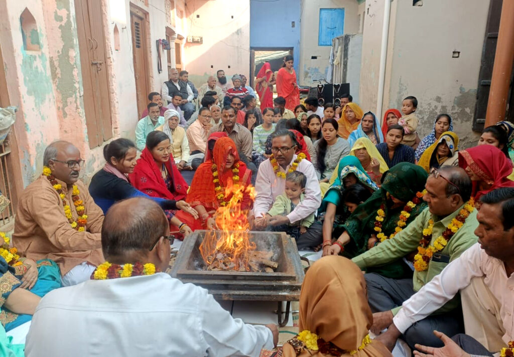 इस अवसर पर आर्य समाज के पदाधिकारियों के द्वारा वरिष्ठ जनों का सम्मान भी किया गया। कानपुर से आईं उर्मिला आर्या ने अपने भजनों के माध्यम से शराब आदि सामाजिक कुरीतियों को त्यागने का संकल्प कराया तथा बच्चों के बौद्धिक विकास के लिए यज्ञ तथा संध्या से जुडऩे का आवाह्न किया। आर्य समाज के प्रधान प्रदीप आर्य ने सभी का आभार व्यक्त किया। कार्यक्रम में महेश्वर दयाल आर्य, अशोक आर्य, नरेंद्र आर्य, संतोष आर्य, अरुण राठौर, मनोज राठौर, अमित राठौर, विनोद कुमार, विवेक आर्य, अनुराग आर्य, रजत आर्य, नीलम आर्या, ओमनी राठौर, आकांक्षा राठौर, आदि उपस्थित रहे।