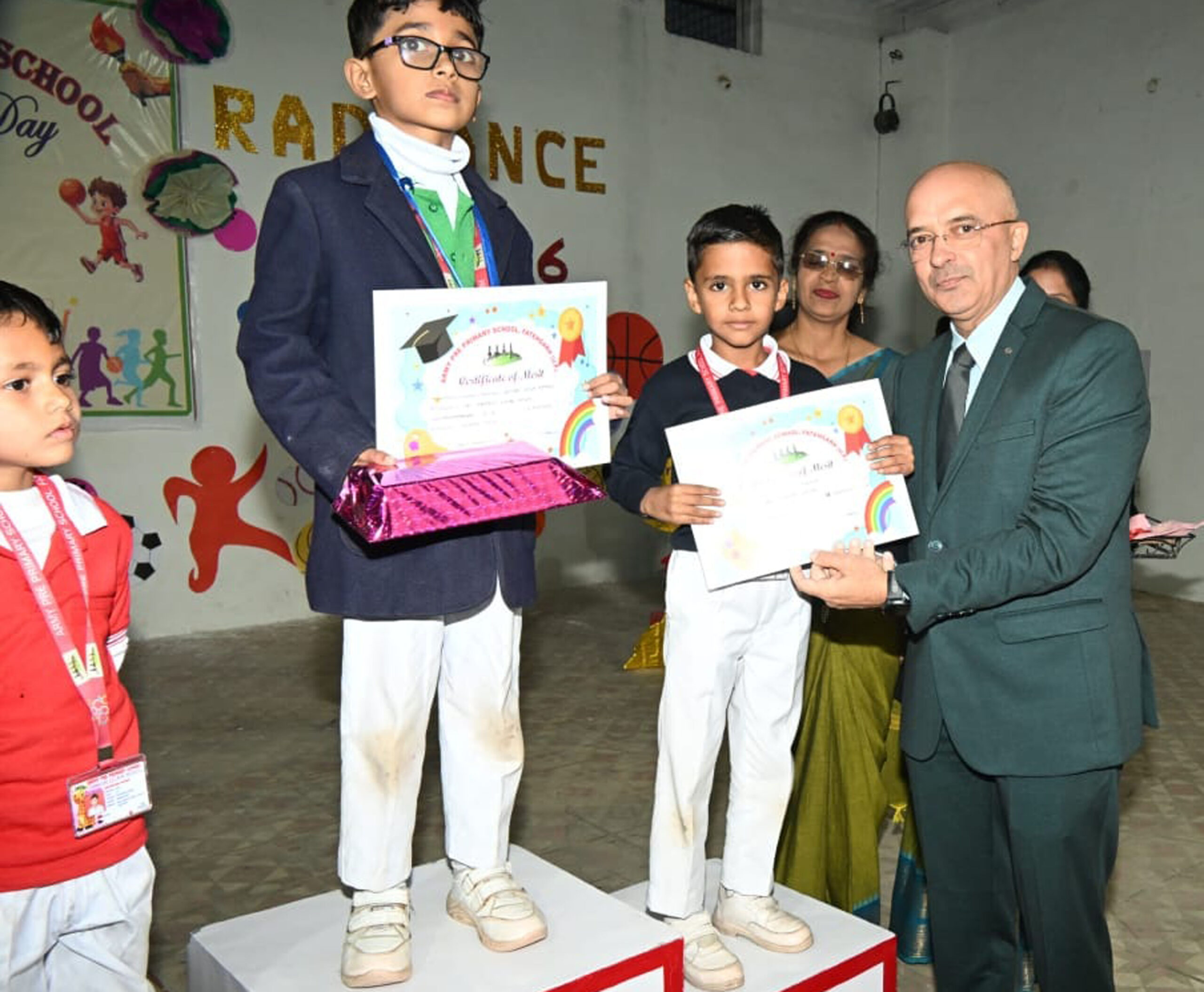 समारोह के दौरान विभिन्न प्रतियोगिताओं में उत्कृष्ट प्रदर्शन करने वाले बच्चों और जिला स्तर पर ताइक्वांडो स्पर्धा में अच्छा प्रदर्शन करने वाले बच्चों को पुरस्कार वितरित कर सम्मानित किया गया। बच्चों के उत्साह और प्रतिभा ने उपस्थित अभिभावकों एवं अतिथियों को अत्यंत प्रभावित किया। समारोह के अंत में मुख्य अतिथि ब्रिगेडियर माइकल डिसूज़ा युद्ध सेवा मैडल ने अपने संबोधन में कहा कि खेलकूद बच्चों के सर्वांगीण विकास की पहली सीढ़ी है। उन्होंने विद्यालय प्रबंधन एवं शिक्षकों की प्रशंसा करते हुए बच्चों को हमेशा खुशी-खुशी सीखते और खेलते रहने के लिए प्रेरित किया। अंत में धन्यवाद ज्ञापन एवं राष्ट्रीय गान के साथ समारोह का सफलतापूर्वक समापन हुआ।