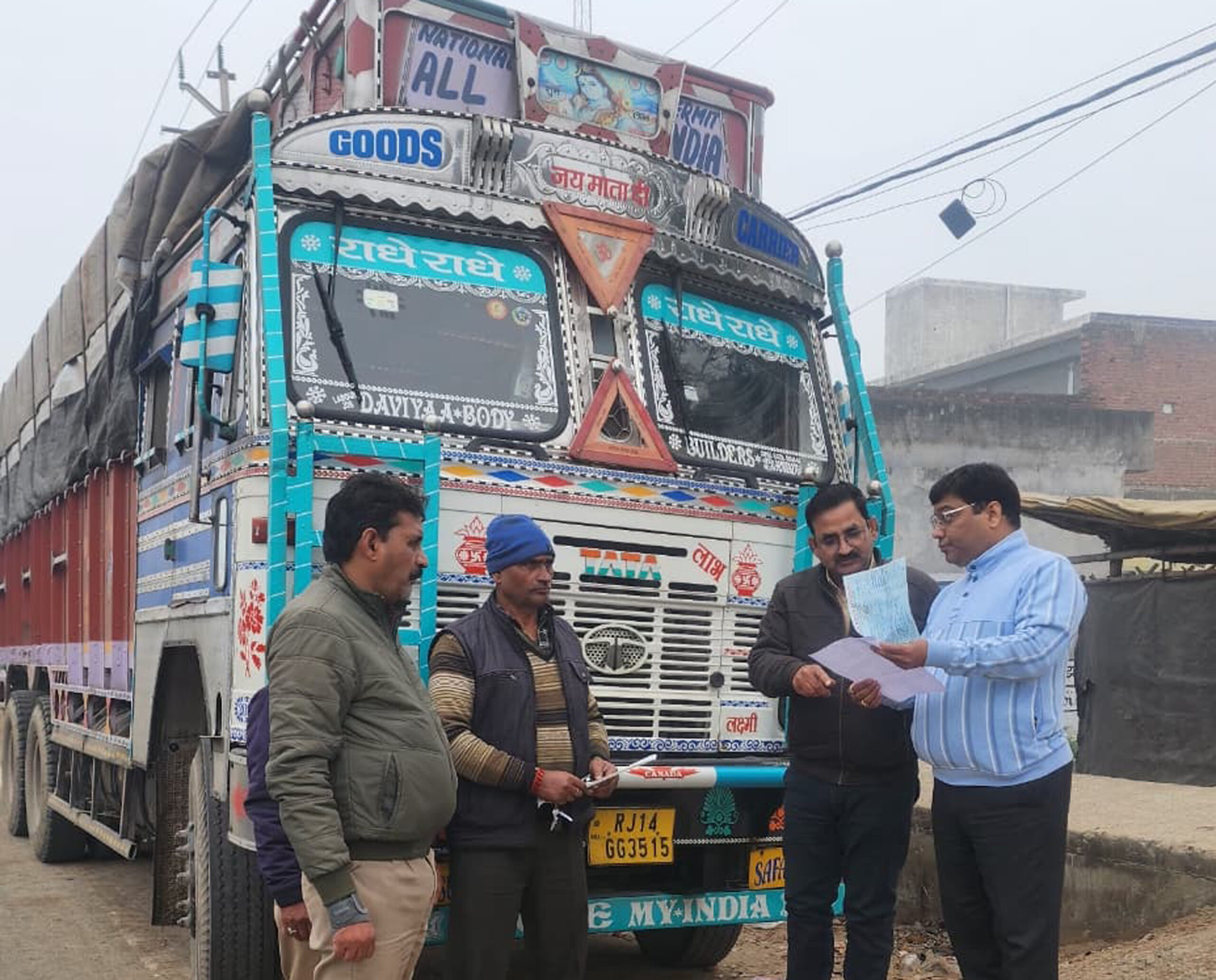 फर्रुखाबाद, समृद्धि न्यूज। जिलाधिकारी आशुतोष कुमार द्विवेदी के निर्देशन में एआरटीओ-प्रवर्तन सुभाष राजपूत ने माल वाहनों के विरूद्ध सघन चेकिंग अभियान चलाया। चेकिंग के दौरान बिना राज्य कर प्रपत्र सुपारी ढोते हुये 01 ट्रक संचालित पाया गया। जिसमें रू0 28.98 लाख मूल्य की सुपारी लदी थी। एआरटीओ ने दूरभाष पर अमित त्यागी सहायक आयुक्त (राज्य कर) सचल दल फतेहगढ़ से इस ट्रक के राज्य कर भुगतान का सत्यापन कराया गया तो उनके द्वारा अवगत कराया गया कि वाहन में लदी सुपारी का जीएसटी जमा नहीं है। प्रस्तुत किये गये बिल के अनुसार वाहन में लदा माल दिल्ली से असम जा रहा था, परन्तु यह सेन्ट्रल जेल से अल्लागंज की ओर जाते हुये एआरटीओ आफिस के पास पकड़ा गया। ट्रक को अमित त्यागी सहायक आयुक्त (राज्य कर) सचल दल फतेहगढ़ को सुपुर्द कर दिया गया तथा उनके द्वारा इस ट्रक को सातनपुर मण्डी में सीज कर दिया गया है। इसके अतिरिक्त 1 ओवरलोड व 02 ओवर हाईट ट्रक भी सीज किया गये। ओवरलोड ट्रक पर रू0 50 हजार तथा ओवर हाईट ट्रकों पर रू0 16 हजार जुर्माना लगाया गया। परिवहन विभाग द्वारा की कार्यवाही में 04 वाहनों के विरूद्ध कार्यवाही करते हुये रू0 6़6 हजार का जुर्माना लगाया गया। यह अभियान आगे भी जारी रहेगा।