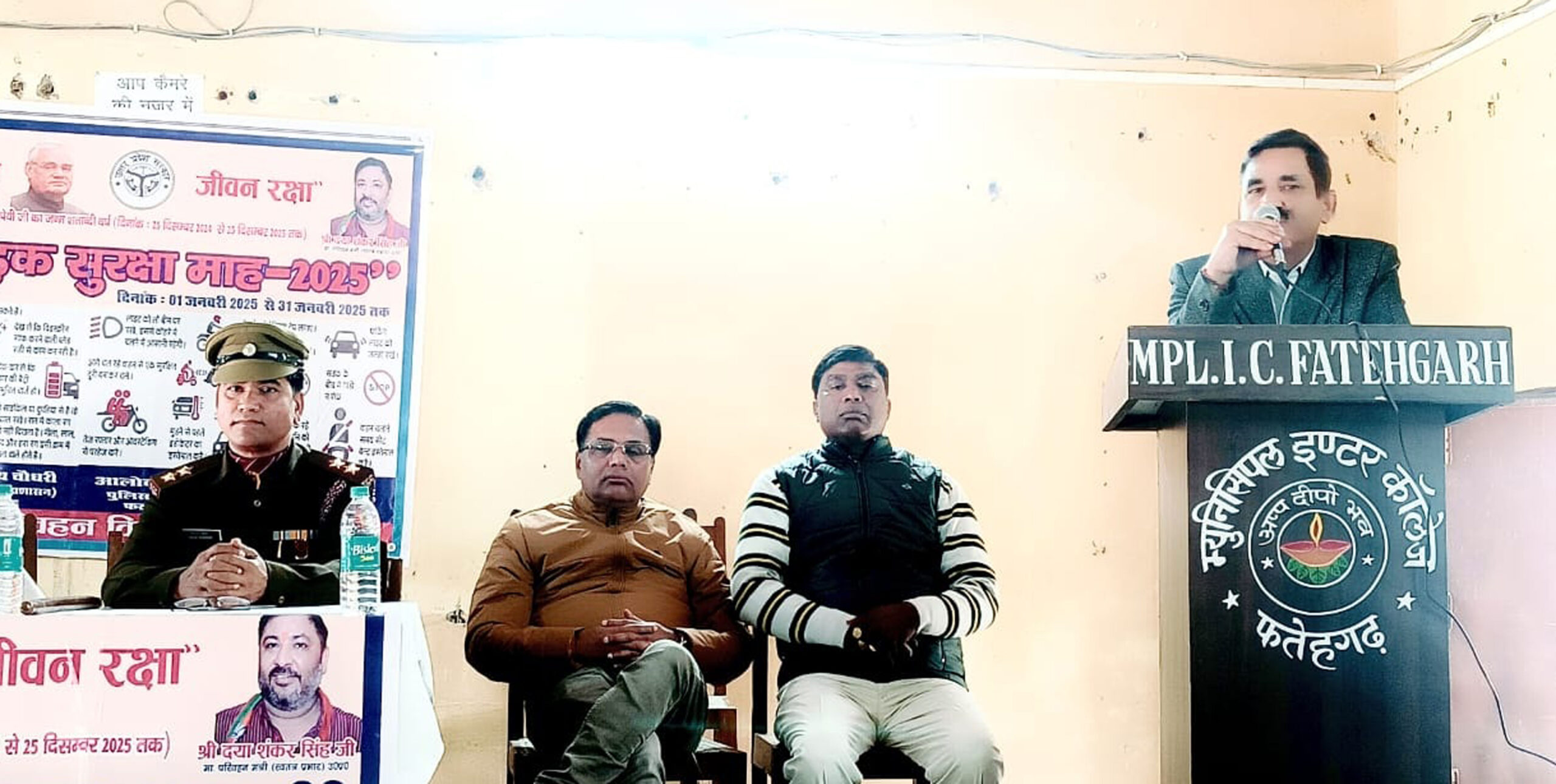 राष्ट्रीय सडक़ सुरक्षा माह के अन्तर्गत म्युनिसिपल इंटर कॉलेज में संगोष्ठी का आयोजन हुआ। प्रधानाचार्य लेफ्टि0 गिरिजाशंकर को जनपद स्तर पर सडक़ सुरक्षा संबंधी विभिन्न प्रतियोगिताएं जैसे भाषण, क्विज तथा चित्रकला/पोस्टर प्रतियोगिता के आयोजन करने हेतु जिला विद्यालय निरीक्षक नरेंद्र पाल सिंह द्वारा नोडल अधिकारी नामित किया गया है। जिसके अनुपालन में प्रधानाचार्य गिरिजाशंकर द्वारा विद्यालय में छात्रों तथा एनसीसी कैडेट्स के साथ सडक़ सुरक्षा हेतु जागरूकता अभियान का आयोजन किया गया। एआरटीओ का माल्यार्पण कर प्रधानाचार्य गिरजा शंकर ने सम्मानित किया। संचालन डा0 दिनेश चंद्र ने किया। प्रवक्ता प्रदीप कुमार जायसवाल व विश्व प्रकाश दीक्षित तथा डॉ0 दिनेश चंद्रा ने सडक़ सुरक्षा से संबंधित छात्रों तथा एनसीसी कैडेट्स को विभिन्न जानकारियां दी तथा जागरूक रहने के लिए प्रेरित किया। लेफ्टिनेंट गिरिजा शंकर ने सम्बोधित करते हुए कहा कि यद्यपि हम सभी जागरूक हैं, फिर भी हर वर्ष जागरूकता अभियान चलाने के बावजूद भी दुर्घटना में कमी नहीं हो रही है, जिसका कारण है आम जनमानस का जागरूकता संबंधी नियमों का पालन न करना, गंभीरता से ना लेना जिसके चलते सडक़ पर आए दिन दुर्घटनाएं होती हैं। हाल ही में प्रकाश में आ रहा है कि चाइनीज मांझे से नवयुवक पतंग बाजी करते हैं जिससे कई प्रकार की दुर्घटनाएँ घटित हो रही हैं। उन्होंने मांग की कि चाइनीच मांझा बंद किया जाये। जो लोग उनका पालन न करें उन पर कड़ी कार्यवाही की जाये। एआरटीओ सुभाष राजपूत ने एनसीसी कैडेट्स को सडक़ सुरक्षा हेतु संवेदनशील रहने के लिए प्रेरित किया। उन्होंने कहा कि सभी छात्र तथा एनसीसी कैडेट्स समाज में जागरूकता फैलाने का कार्य करें। जिससे जनपद में होने वाली दुर्घटनाओं से बचा जा सके। शासन द्वारा निर्देश प्रदान किए गए हैं कि तमाम उन्होंने बताया जागरूकता फैलाने के बावजूद भी पढ़े-लिखे समाज के लोग उसका अनुसरण नहीं कर रहे हैं। साथ ही सडक़ सुरक्षा की शपथ दिलायी गई। इस मौके पर शिक्षक मयंक रस्तोगी, अरविंद कुमार, अशोक कुमार कठेरिया, रामेश्वर दयाल, प्रबल प्रताप सिंह, निरुक्त मिश्रा आदि लोग मौजूद रहे।