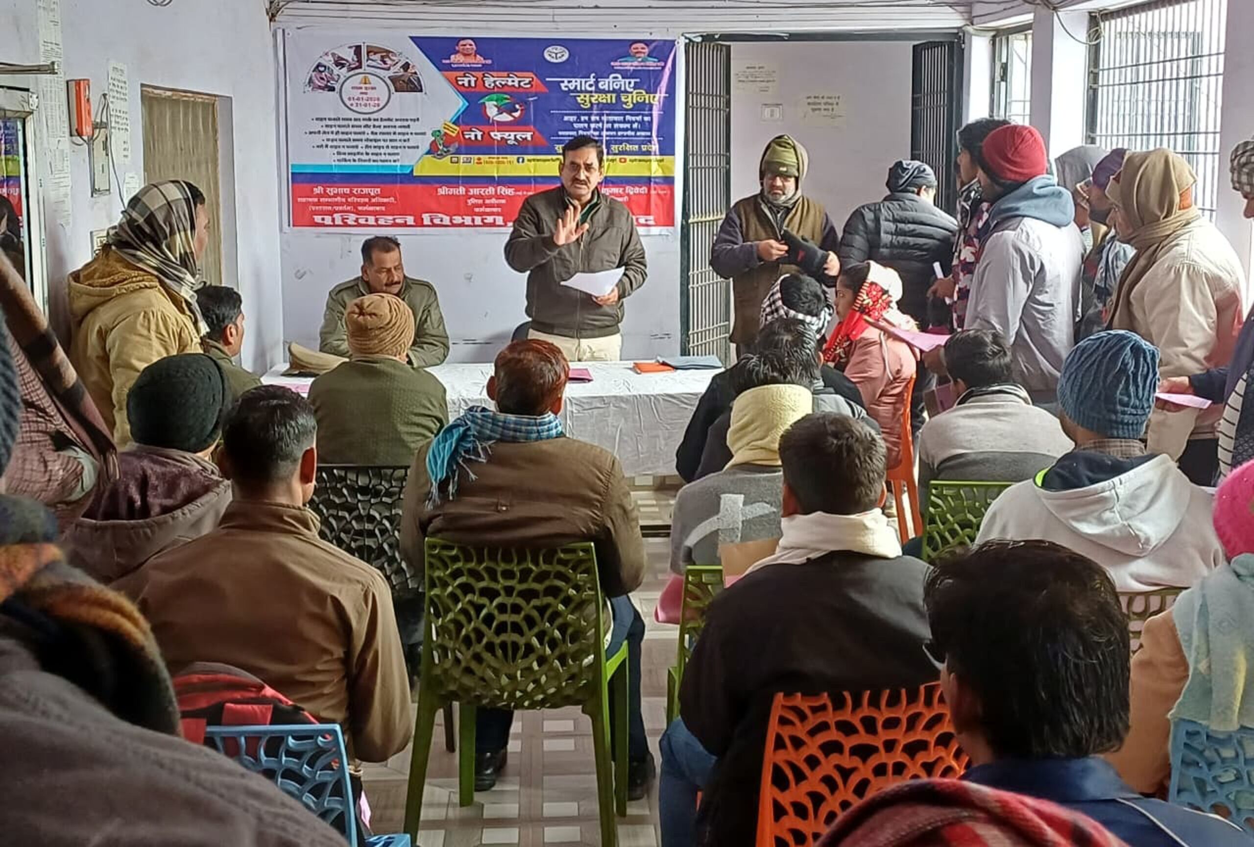 फर्रुखाबाद, समृद्धि न्यूज। सडक़ सुरक्षा माह के अन्तर्गत एआरटीओ-प्रवर्तन सुभाष राजपूत एवं यातायात प्रभारी सत्येन्द्र कुमार ने एआरटीओ कार्यालय में ड्राईविंग लाइसेन्स के टेस्ट देने हेतु आये हुये आवेदकों तथा विभागीय कार्य से आये हुये अन्य आवेदकों को सडक़ सुरक्षा के प्रति जागरूक किया गया। जागरुकता कार्यक्रम में 62 लोगोंं ने प्रतिभाग किया गया।