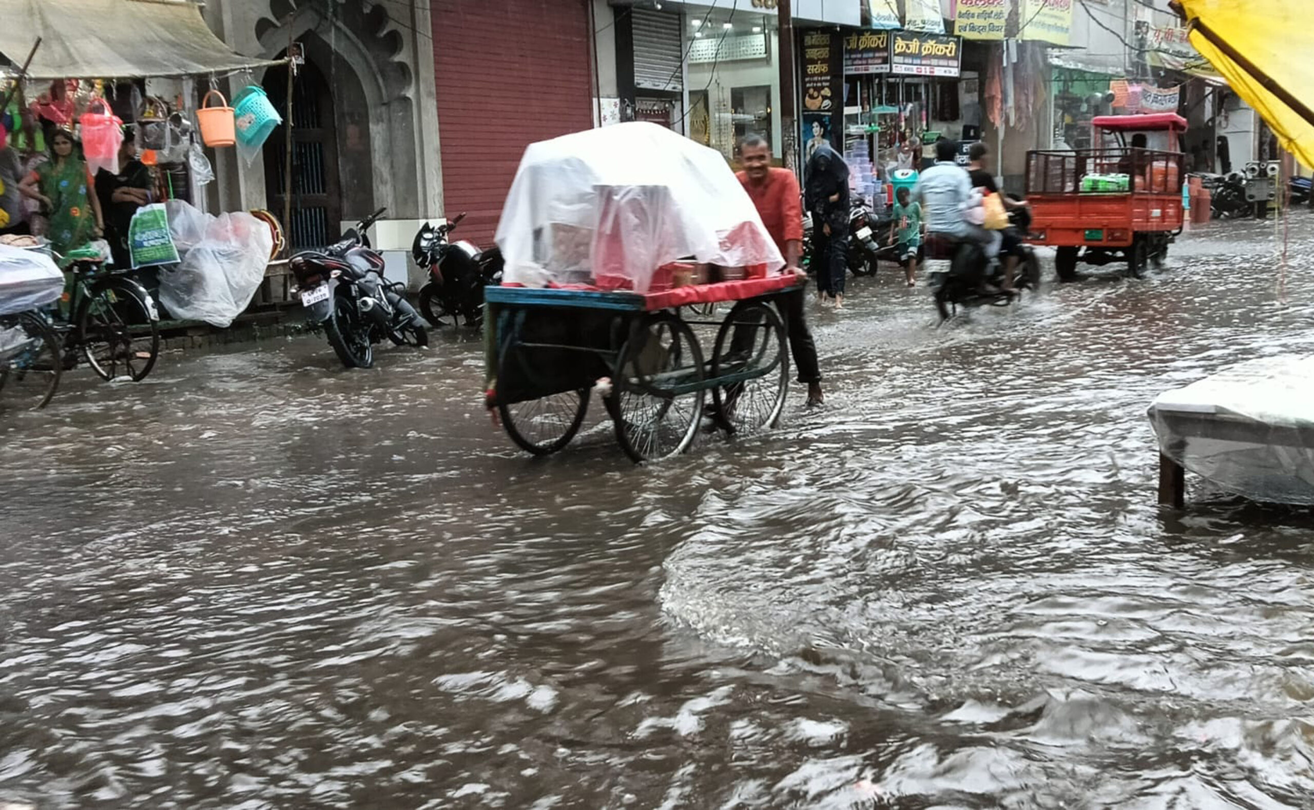 फर्रुखाबाद, समृद्धि न्यूज। झमाझम बारिश से रेलवे रोड की सडक़े टापू बन गयी। नालियों की सफाई न होना और रेलवे रोड का सुंदरीकरण अधर में लटके रहने के कारण बारिश होते ही सडक़ों पर पानी भर जाता है। मुख्य मार्ग पर घुटनों तक पानी भरने के कारण आवागमन कई घंटे तक अवरुद्ध रहा। जिलाधिकारी के निर्देश के बावजूद भी अभी तक रेलवे रोड के सुंदरीकरण का कार्य शुरु नहीं किया गया है। इसका जीता जागता नजारा बरसात में देखने को मिल रहा है। पिछले दो साल से रेलवे रोड के दुकानदार सुंदरीकरण का इंतजार कर रहे है। इस संबंध में एमएलसी प्रांशुदत्त द्विवेदी को भी ज्ञापन सौंपा गया था। उन्होंने भी जिलाधिकारी को पत्र सौंपकर सुंदरीकरण कराये जाने का प्रस्ताव रखा था। उसके बावजूद भी कागजों में कार्य की प्रगति रुकी हुई है। अभी तक रेलवे रोड की दुर्दशा पिछले वर्ष की तरह बनी हुई है। थोड़ी सी बारिश में नालियां बजबजाने लगती है और सडक़ों पर पानी भर जाता है। ऐसी स्थिति से दूसरे जनपद से फर्रुखाबाद की तुलना करना चांद में रोशनी दिखाने के समान है। क्योंकि अब नगर पालिकाध्यक्ष भी भाजपा में शामिल हो चुके है। अब वरीयता से बात रखने वाला विपक्ष भी नहीं है। इस मनमानी के कारण शासन-प्रशासन का भी रुख स्पष्ट नहीं दिख रहा है। ऐसे में रेलवे रोड के व्यापारी व जनता परेशानियों से जूझ रहे है।
