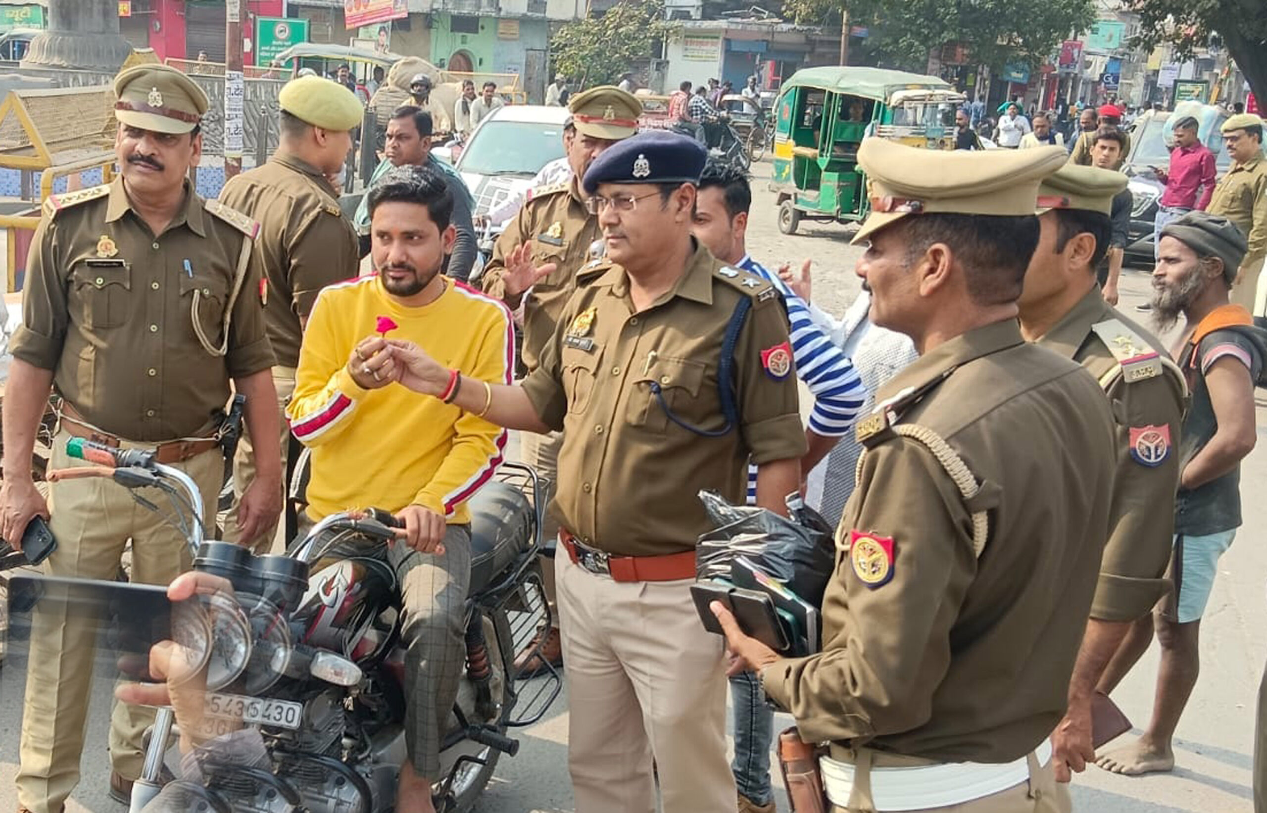 एएसपी ने बाइक चालकों को गुलाब देकर हेलमेट पहनने के लिए किया प्रेरित