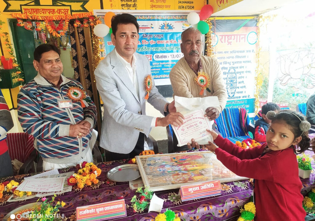 फर्रुखाबाद, समृद्धि न्यूज। प्राथमिक विद्यालय मदारपुर में वार्षिकोत्सव कार्यक्रम धूमधाम से मनाया गया। शुभारंभ कायमगंज नगर पालिकाध्यक्ष डॉ0 शरद गंगवार एवं ग्राम प्रधान प्रतिमा वर्मा के संरक्षक नबाब सिंह वर्मा, विद्यालय प्रधानाध्यापक राजकिशोर शुक्ल ने संयुक्त रूप से मां सरस्वती प्रतिमा का माल्यार्पण कर दीप प्रज्ज्वलित कर किया। बच्चों ने सरस्वती वंदना प्रस्तुत कर स्वागत गीत गाया। विभिन्न प्रतियोगिताओं के विजेताओं को प्रथम, द्वितीय, तृतीय एवं सांत्वना पुरस्कार प्राप्त 21 बच्चों को पुरस्कृत किया गया। पालिकाध्यक्ष ने कहा कि पुरस्कार से बच्चों का मनोबल बढ़ता है। जिन बच्चों को पुरस्कार नहीं मिला उन्हें और अधिक मेहनत करनी है। मार्च में परीक्षाफल वितरण में फिर से पुरस्कृत किया जाएगा। कार्यक्रम को नबाब सिंह वर्मा, खेतल सिंह, योगेन्द्र कुमार आदि ने संबोधित किया। कार्यक्रम में सुशील चतुर्वेदी, कपिल चतुर्वेदी, पेशकार, कामिनी, सुनंदा, कोमल, आशा, उमा, विद्या, सत्यवती, निशा, नन्हें, राजू, चंद्र पाल आदि उपस्थित रहे। प्रधानाध्यापक राजकिशोर शुक्ल ने सभी आगन्तुकों का आभार जताया।