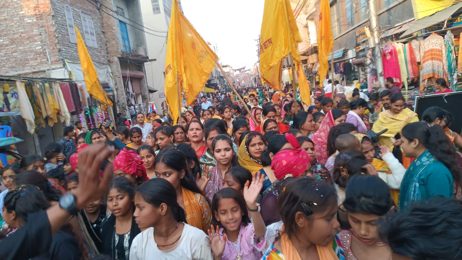 जगह-जगह पुष्प वर्षा कर भक्तों ने उतारी आरती