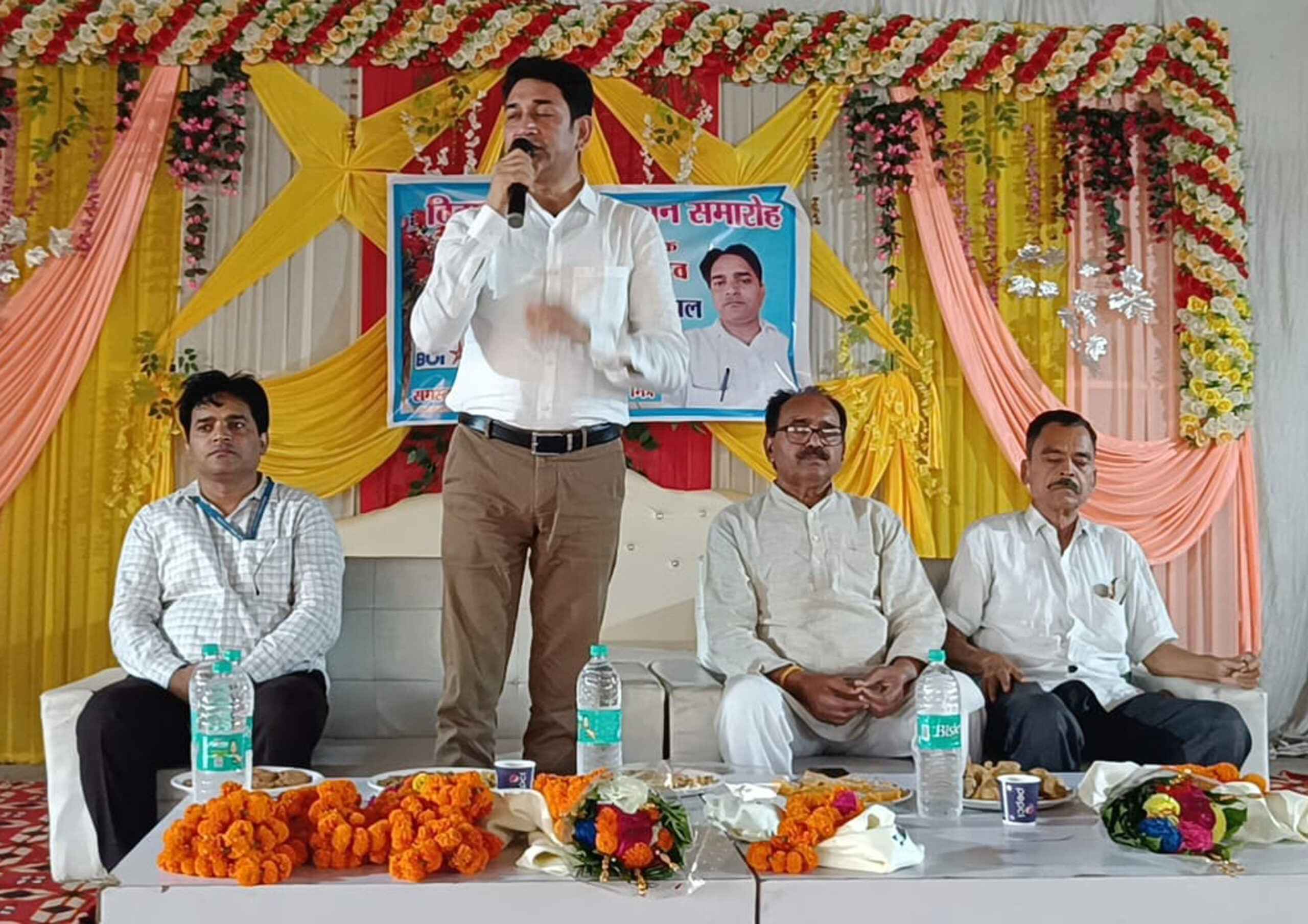 कंपिल, समृद्धि न्यूज। कंपिल स्थित बैंक ऑफ इंडिया के प्रबंधक अमित कुमार यादव के स्थानांतरण पर बुधवार देर शाम एक गेस्ट हाउस में विदाई समारोह आयोजित किया गया। विदाई समारोह के शुरुआत में सभी लोगों ने शाखा प्रबंधक को गुलदस्ता देकर व फूलमाला पहनाकर मुंह मीठा कराते हुए अंगवस्त्र प्रदान कर सम्मानित किया। कार्यक्रम का संचालन करते हुए कैशियर प्रियांशू कुमार ने बताया कि दस वर्षों के बाद किसी शाखा प्रबंधक की विदाई समारोह ग्राहकों द्वारा आयोजित किया गया। संबोधित करते हुए निवर्तमान प्रबंधक ने कहा कि तीन वर्ष के संक्षिप्त कार्यकाल में सभी को साथ लेकर चलने का प्रयास किया। उन्होंने कहा कि वर्तमान प्रबंधक को ग्राहकों से बेहतर संबंध बनाना होगा। उन्होंने ग्राहकों से भी बैंक से बेहतर संबंध रखने की अपील की। उन्होंने अपने कार्यकाल के दौरान ग्राहकों के सहयोग की सराहना की। इस मौके पर मुख्य अतिथि चेयरमैन शरद गंगवांर, लालाराम शाक्य, नंदराम शाक्य, राहुल कुमार, अजीत कुमार, नीरज बिष्ट, प्रवीन कुमार, अनूप कुमार, ओमशरण राजपूत, अनुज कुमार, विवेक कुमार, शेर सिंह, शिवा राजपूत, राघवेंद्र सिंह आदि लोग मौजूद रहे।