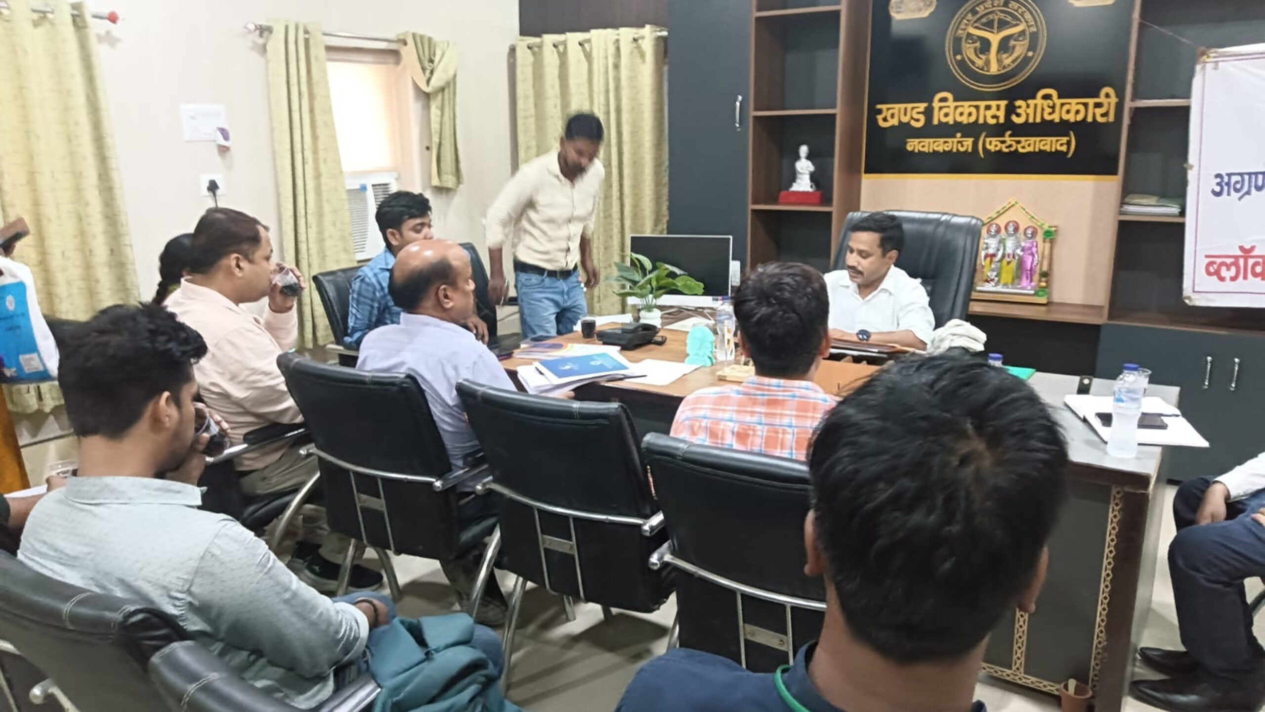 नवाबगंज विकास खंड क्षेत्र के सभी अग्रणी बैंक शाखाओं के प्रबंधकों के साथ विकास खंड अधिकारी सुनील श्रीवास्तव ने बैठक की। जिसमें विकास खंड क्षेत्र के सभी समूह की महिलाओं तथा कर्मचारियों के रोजगार के बारे में विकास खंड क्षेत्र के सभी बैंक कर्मचारियों से बैठक में रोजगार के बारे में विचार विमर्श किया गया। जिसमें विकास खंड अधिकारी सुनील श्रीवास्तव ने समूह की महिलाओं, ई-सखी तथा उनके रोजगार के लिए लोन आदि दिलाने की बात कही गई। जिससे कि समूह की महिलाएं खुद ही सक्षम होकर और अपना व अपना जीवनयापनकर सकें। इसके लिए ब्लॉक स्तरीय समिति की बैठक कर उनके बारे में जानकारी की। वही वीएम अनुज शुक्ला के द्वारा अपने अभिलेख पूर्ण न करने पर विकासखंड अधिकारी ने खरी खोटी सुनाई। बैंक कर्मचारियों व प्रबंधकों ने विकास खंड अधिकारी को बताया कि उनके ही विकास खंड के वीएम के द्वारा अभिलेख पूर्ण नहीं कराए जा रहे हैं, तो फिर भला कैसे बैंक अधिकारी अपना कार्य कर सकेंगे। इस मौके पर विकास खंड अधिकारी सुनील श्रीवास्तव, सुशील कुमार शाखा प्रबंधक बैंक ऑफ़ इंडिया चंदुईया, अरविंद कुमार प्रबंधक बैंक ऑफ इंडिया गनीपुर जोगदपुर, विश्वदीप राय शाखा प्रबंधक बैंक ऑफ़ इंडिया भाटासा, गौरव कुमार गौतम सहायक प्रबंधक आर्यावर्त ग्रामीण बैंक नवाबगंज तथा विकासखंड के बीएमएम अनुज शुक्ला, बीएमएम संजीव कुमार, बीएमएम ममता देवी तथा विकासखंड क्षेत्र के कई ग्रामों की समूह, सखी तथा ई-सखी महिलाएं मौजूद रही।