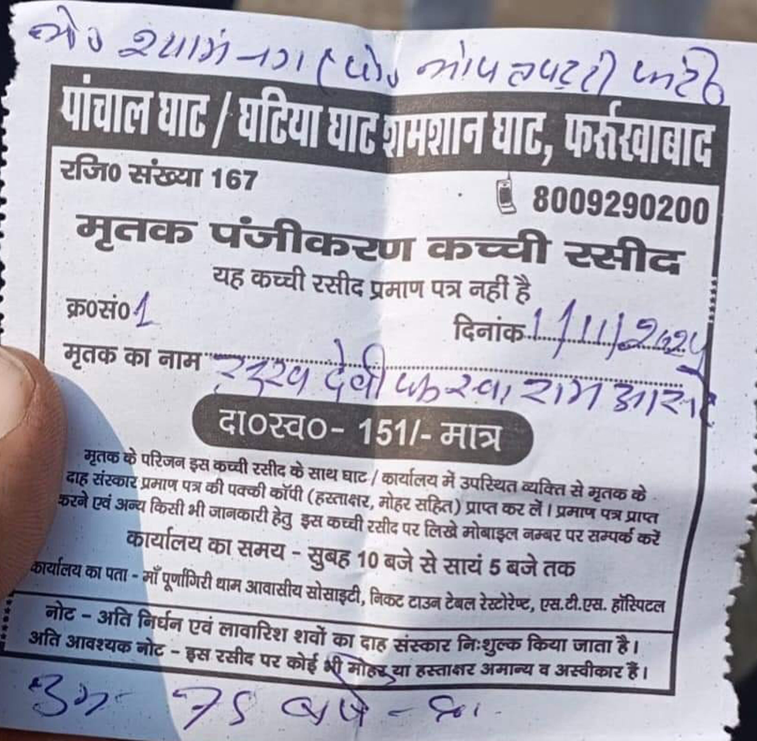 फर्रुखाबाद, समृद्धि न्यूज। पांचाल घाट स्थित स्वर्ग धाम शमशान घाट पर पिछले काफी समय से कुछ अराजकतत्व संस्था के नाम पर अंतिम संस्कार के लिए शमशान घाट पर आने वाले लोगों के पारिवारिकजनों से घाट पर अंतिम क्रिया के नाम पर अवैध रूप से वसूली करते है। समाजसेवी व फर्रुखाबाद विकास मंच के अध्यक्ष आशीष मिश्रा भईयन ने अवैध वसूली का आरोप लगाते हुए कहा कि 700 या 500 रुपये लेकर 151 की रसीद थमा दी जाती है, जो लोग इसका बहुत विरोध करते, तो वसूली करने वाले अराजकतत्व उनके साथ में अभद्रता करते है। ऐसा ही एक मामला जब हम लोग घाट पर थे तब हुआ। मेरे द्वारा इसकी जानकारी करने पर संस्था के लोगों ने पहले तो दबाव बनाने का प्रयास किया। जब मैंने सख्ती से बात की तो इस मामले को रफदफा करने एवं माफी मांग लेने की बात सामने आयी। घाट पर रसीद काटने वालों ने कहा कि अब १५१ रुपये ही लिया करेगें। इस अवैध वसूली के खिलाफ संस्था के लोगों ने पूछा की तुम्हे रसीद काटने की किसने अधिकृत किया है तो वह कोई भी कागज नहीं दिखा पाये। इस संबंध में थानाध्यक्ष कादरीगेट आमोद सिंह को फोन पर जानकारी दी गई। तुरन्त मौके पर पुलिस को भेजा गया। यह अवैध वसूली का कार्य पिछले सात वर्षों से चल रहा है। भईयन मिश्रा ने कहा कि इस तरह की कोई अवैध वसूली करते हुए मिले तो हमें सूचना दे। हम ऐसे लोगों के खिलाफ कार्यवाही करायेगें।