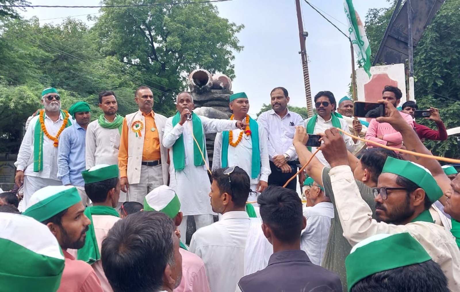 फर्रुखाबाद, समृद्धि न्यूज। भारतीय किसान यूनियन टिकैत गुट ने किसान हितों की मांगों को लेकर कलेक्ट्रेट तक ट्रैक्टरों का जुलूस निकाला। ट्रैक्टरों पर तिरंगे झंडे व किसान यूनियन के झंडे लगाकर कलेक्ट्रेट पहुंचे। जहां 11 सूत्रीय मांगों को लेकर मुख्यमंत्री को संबोधित ज्ञापन डीएम को सौंपा। ज्ञापन में मांग की गयी कि अमृतपुर तहसील के किसान हर साल गंगा में बाढ़ आने से किसानों की फसलें नष्ट हो जाती हैं, घरों में पानी भर जाता है। पांचाल घाट से लेकर अमृतपुर तक बांध बनवाया जाये। जिससे किसानों की फसल व जमीन सुरक्षित रहे। चुनाव के दौरान सरकार ने घोषणा की थी कि किसानों की सिंचाई हेतु बिजली फ्री देंगे, नलकूप के बिलों को माफ भी नहीं किया गया और वायदा के मुताबिक बिजली भी नहीं दी गयी। प्रदेश के कई हिस्सों में भूमि अधिग्रहण को लेकर चल रहे किसान आंदोलन के एक रुपी पालिसी के आधार पर किसानों की भूमि अधिग्रहण करें और मुआवजा राशि सर्किल रेट से चार गुनी अधिक दी जाये। एनजीटी के नियमों में किसानों के लिए ढील देने का काम किया जाये, जिससे कृषि में काम आने वाली सभी मशीनरी व साधनों में छूट मिल सके। आवारा पशुओं की समस्या विकराल है। छुट्टा पशुओं को गौशाला में पहुंचाये जायें। जिससे किसानों की फसलों की सुरक्षा हो सके, फसलों के उचित लाभकारी मूल्य भी दिये जायें, घरेलू विद्युत बिलों में एक मुश्त समाधान योजना की जाये, गंगा बाढ़ से प्रभावित किसानों को फसलें नष्ट होने पर मुआवजा दिया जाये, यशोदा कोल्ड स्टोरेज में किसानों का आलू भंडारित है। कोई कार्यवाही न की जाये, जिससे नुकसान उठाना पड़े आदि मांगों को लेकर किसान यूनियन ने प्रदर्शन करते हुए ज्ञापन सौंपा। इस मौके पर जिलाध्यक्ष अरविंद शाक्य, प्रभाकांत मिश्रा, लक्ष्मीशंकर जोशी, विजय कटियार, सुग्रीव पाल, संजीव यादव, बिट्टो देवीतारा देवी, अशोक फौजी, सुबोध यादव, सोनू सोमवंशी, कुलदीप अवस्थी, सत्यराम राजपूत, संजय यादव आदि किसान मौजूद रहे।
