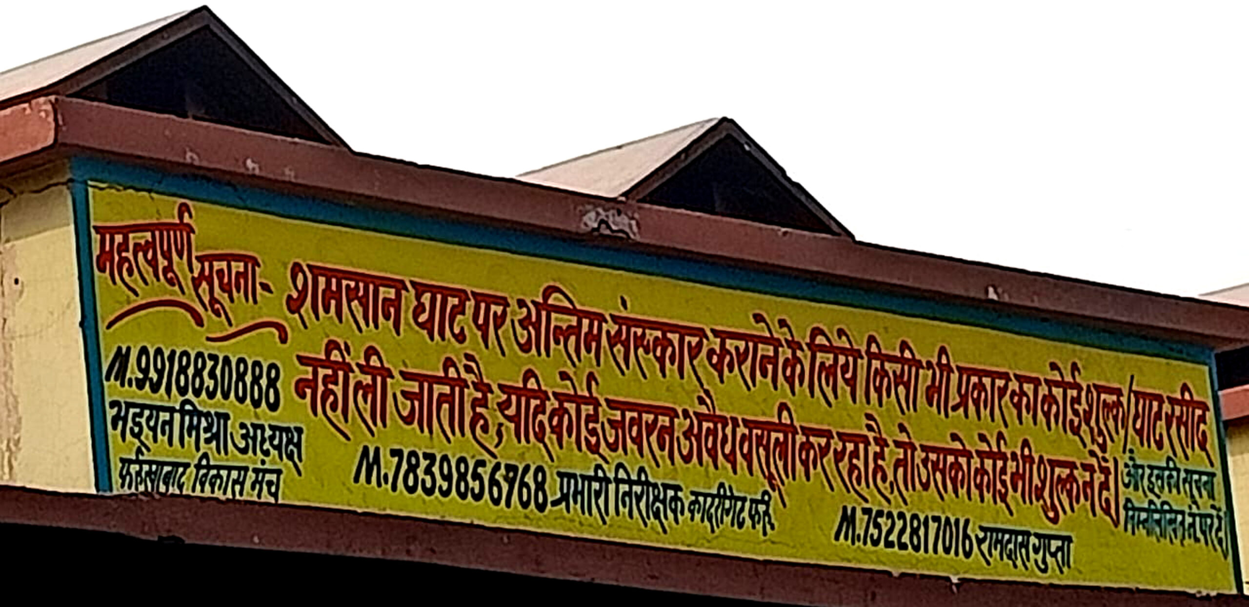 फर्रुखाबाद, समृद्धि न्यूज। पांचाल घाट स्थित श्मशान घाट पर फर्रुखाबाद विकास मंच के जिलाध्यक्ष भईयन मिश्रा के नेतृत्व में पिछले 7 वर्षों से हो रही जबरन अवैध वसूली को बंद करवाने के लिए पूरे पांचाल घाट श्मशान घाट पर वॉल राइटिंग करवाई गई, कोई भी मृतक के अंतिम संस्कार के समय किसी भी प्रकार का पैसा रसीद काट कर वसूली करने वालों को ना दें। वहां पर पूरी जानकारी करने के बाद जो अभी तक अवैध वसूली कर रहे थे। उनके गिरोह का मुख्य सरगना और उसके सभी गुर्गे पांचाल घाट पर बुलवाए और अभी तक उन लोगों से मृतक व्यक्ति के अंतिम संस्कार के नाम पर जबरन की जा रही है। अवैध वसूली के संबंध में पूछताछ की तो वह अपने आप को घाट पर वसूली के लिए अधिकृत व्यक्ति बताने लगे पर जब उनसे कड़ाई से पूछताछ की तो वह कोई भी संतोषजनक उत्तर नहीं दे सके और अपनी वसूली को सही साबित करने की कोशिश करने लगे। जब उनको लगा कि अब हमारा भंडाफोड़ हो चुका है। वहीं वसूली करने वाले हाथ जोडक़र माफी मांगने लगे, जिसे सैकड़ों लोगों ने देखा। भईयन मिश्रा ने कहा कि भावनाओं से खिलवाड़ करना और अवैध वसूली करना गलत है। जिसके लिए जरुरत पड़ी तो कानूनी कार्यवाही भी की जायेगी। वसूली करने वालों ने हाथ जोडक़र माफी मांगी और फर्रुखाबाद विकास मंच के अध्यक्ष भईयन मिश्रा के समक्ष गिड़गिड़ाते नजर आये और कहा कि भविष्य में इस गलत काम को नहीं करेंगे। इस मौके पर रामदास गुप्ता, पवन गुप्ता, कोमल पांडे, पिंटू दुबे, आलोक मिश्रा भरे, मोहित खन्ना, बाबू भाई, प्रवीण अरोड़ा, रामप्रताप अग्निहोत्री, सनी गुप्ता, संजू तिवारी, वरुण दुबे, अमित मिश्रा राम, अनूप अग्निहोत्री, श्यामेंद्र दुबे नीरज आदि मौजूद रहे।