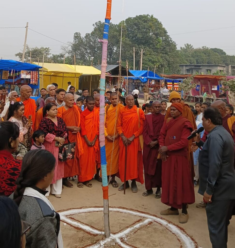 संकिसा, समृद्धि न्यूज। रविवार को भिक्षु संघ ने पंचशील ध्वज फहराकर 56वां भगवान बुद्ध स्वर्गावतरण समारोह के अवसर पर दो दिवसीय कौमुदी बुद्ध महोत्सव का उद्घाटन किया।रविवार को बुद्ध नगरी संकिसा स्थित भदंत विजय सोम इंटर कॉलेज के प्रांगण में 3.00 बजे लगभग एक दर्जन भिक्षु संघ व आयोजक सुनील दत्त शाक्य आदि पदाधिकारियों ने पंचशील ध्वज फहराकर भगवान बुद्ध के 56 वें स्वर्गावतरण समारोह के अवसर पर दो दिवसीय कौमुदी बुद्ध महोत्सव का उद्घाटन किया। इसके बाद लगभग 3.30 बजे भिक्षु संघ सम्मेलन शुरू हुआ। जिसकी अध्यक्षता भिक्षु धम्म कीर्ति ने की और संचालन भिक्षु सरहपाददीप ने किया। भिक्षु अश्वघोष ने मौजूद लोगों को बताया कि भगवान बुद्ध का धम्म प्राकृतिक धम्म है। भिक्षु विकास दीप ने कहा कि भारत बौद्ध धर्म को भूल गया है और विदेशियों ने बौद्ध धर्म अपना लिया है। संगठन मजबूत होगा तो धम्म भी मजबूत होगा। अभी तक बौद्ध उपासकों ने धम्म हृदय से आर्गीकृत नहीं किया है यदि करेंगे तो कल्याण अवश्य होगा। वहीं भिक्षु सरहपाददीप ने कहा कि संगठन मजबूत करते हुए पंचशील धारण करो समाज में करुणा मैत्री का संदेश दें। इस अवसर पर डॉ0 सत्य प्रकाश शाक्य, डॉ0 कप्तान शाक्य, विजय सिंह, अमर सिंह, डा0 के0पी0 सिंह आदि पदाधिकारियों के अलावा बौद्ध उपासक मौजूद रहे।
