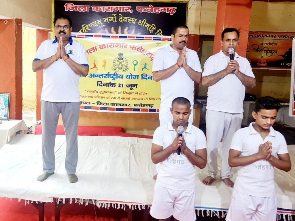 फर्रुखाबाद, समृद्धि न्यूज। जिला कारागार फतेहगढ़ में विश्व योग दिवस के अवसर पर योग कार्यक्रम का आयोजन किया गया। जिसका उद्घाटन नरेंद्र प्रकाश एडीजे, सचिव जिला विधिक सेवा प्राधिकरण ने दीप प्रज्वलन करके किया। योग गुरु सत्यपाल सिंह, प्रशिक्षक विवेक यादव, प्रशिक्षक अजीत पाल सिंह, प्रशिक्षक मोहित कटियार, प्रशिक्षक अभिलाख सिंह ने पुरुष बंदियों को योगासन एवम योग क्रिया कराई एवम महिला कक्ष में महिला जेल वार्डर नगमा, रोहिणी, जोली ने महिला बंदियों को योग अभ्यास कराया। एडीजे नरेंद्र प्रकाश ने योग के महत्व को बताते हुए कहा कि योग के माध्यम से शरीर को निरोगी रखा जा सकता है। प्रतिदिन योग करने से व्यक्ति का दिल और दिमाग दोनों ही स्वस्थ रह सकते हैं। जेल अधीक्षक भीमसैन मुकुंद द्वारा सभी आगंतुकों का धन्यवाद देते हुए कहा गया की योग से बीमारी रहित लंबी आयु का जीवन जिया जा सकता हैं। उन्होंने कहा कि योग हमारी प्राचीन संस्कृति है।