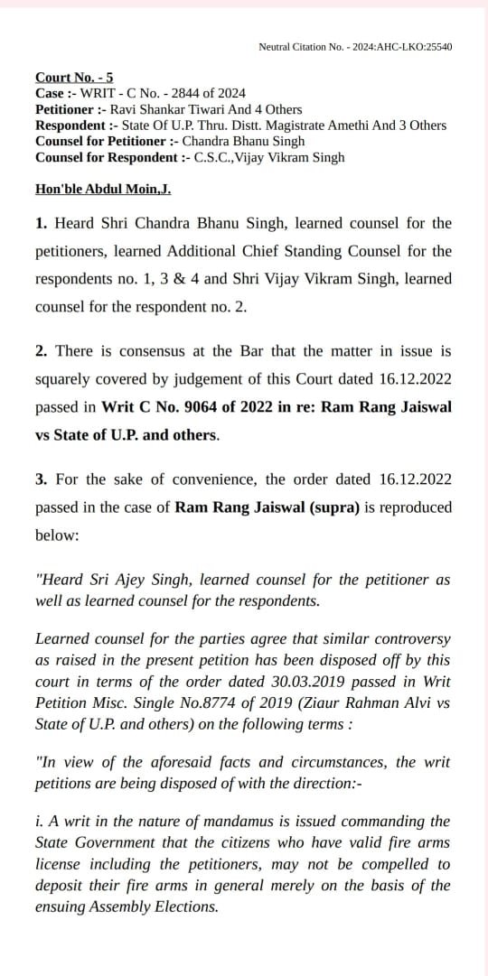असलहा धारकों के लिए कोर्ट से बहुत बड़ी राहत