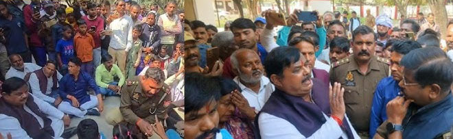सीतापुर: रामपुर मथुरा थानाध्यक्ष संजय पांडेय की कार्यशैली से नाराज भाजपा विधायक ज्ञान तिवारी थाने में धरने पर बैठ गए। उन्होंने आरोप लगाया कि थानाध्यक्ष और उनके कारखास मनमानी कर रहे हैं। विधायक समर्थकों के साथ रामपुर मथुरा थाने पहुंचे और जमीन पर बैठकर विरोध प्रदर्शन शुरू कर दिया। उनका आरोप है कि प्रभारी निरीक्षक संजय पांडे, दीवान और एक सिपाही का व्यवहार जनता के प्रति बेहद खराब है, जिससे लोगों में डर और असंतोष का माहौल है। विधायक ने साफ कर दिया कि जब तक दोषी पुलिसकर्मियों पर कड़ी कार्रवाई नहीं होती उनका विरोध जारी रहेगा। इस दौरान थाने पर समर्थकों की भारी भीड़ जमा हो गई और पुलिस प्रशासन के खिलाफ जमकर नारेबाजी हुई। एक गांव में कुछ दिन पहले नौटंकी के कायक्रम में पुलिस शामिल हुई।
