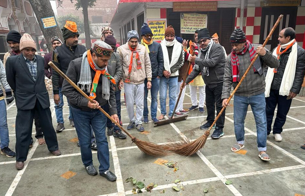 भाजपाइयों ने चलाया मंदिरों में स्वच्छता अभियान