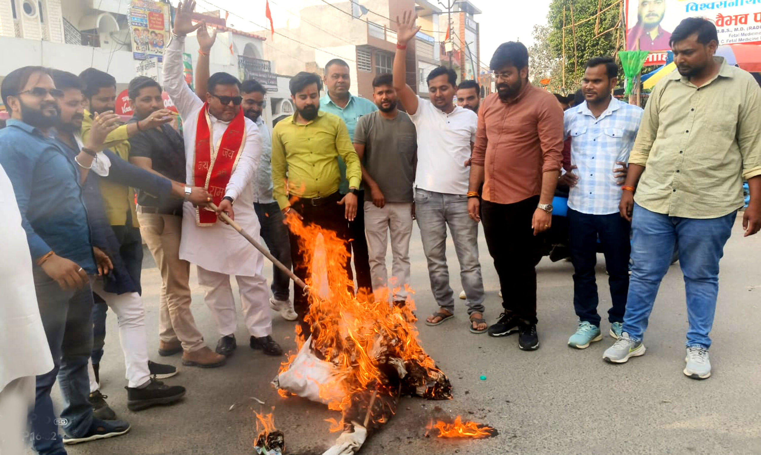 फर्रुखाबाद, समृद्धि न्यूज। भारतीय जनता युवा मोर्चा ने नेशनल हेराल्ड के मामले में कांगे्रस नेता राहुल गांधी को आरोपी बनाये जाने पर उनका पुतला फूंका। भारतीय जनता युवा मोर्चा की बैठक जिला कार्यालय पर सम्पन्न हुई। एक राष्ट्र एक चुनाव अभियान के तहत प्रभारी के रुप में प्रदेश कार्यकारिणी सदस्य अभिषेक जोशी ने भाग लिया। संयोजक भाजयुमो के जिला मंत्री विक्रांत तिवारी ने कार्यक्रम की शुरुआत की। जनपद के सातों ब्लाकों के 18  मण्डल के अध्यक्ष के रुप में राजीव मिश्रा ने अध्यक्षता की। साथ ही नेशनल हेराल्ड के मामले में देश के नेता प्रतिपक्ष राहुल गांधी का पुतला फूंका गया। साथ ही प्ले कार्ड लेकर युवा मोर्चा ने आवास विकास तिराहे, फतेहगढ़ चौराहा, लालगेट तिराहा आदि स्थानों पर विरोध करते हुए प्रदर्शन किया। इस मौके पर जिला मंत्री अंकित गुप्ता, हिमांशु खटिक, रानू दीक्षित, प्रतीक दुबे, सिद्धांत सिंह, रोहित शर्मा, मनोज चतुर्वेदी, सत्यम कटियार, पवन मिश्रा, मयंक गुप्ता, संजय सिंह आदि लोग मौजूद रहे।