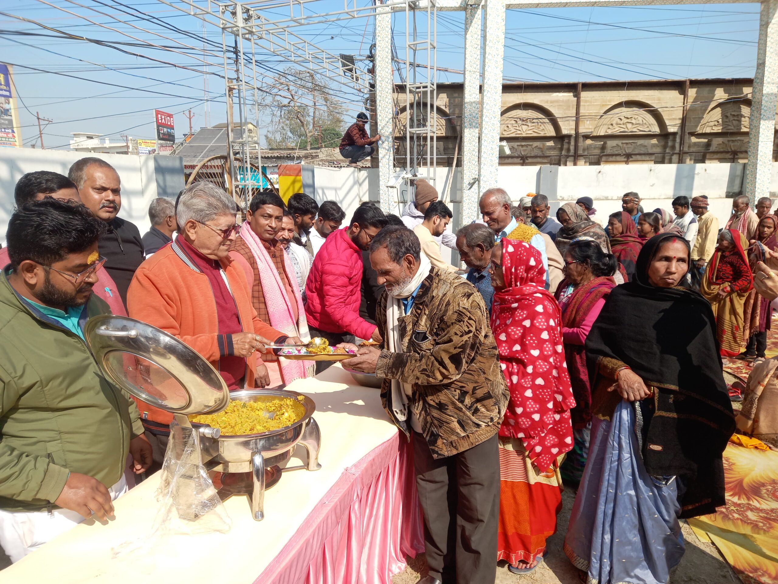 नगर विधायक वेद प्रकाश गुप्ता ने पार्टी कार्यकर्ताओं का भी किया सम्मान,खुद परोसा कर खिलाई खिचड़ी।