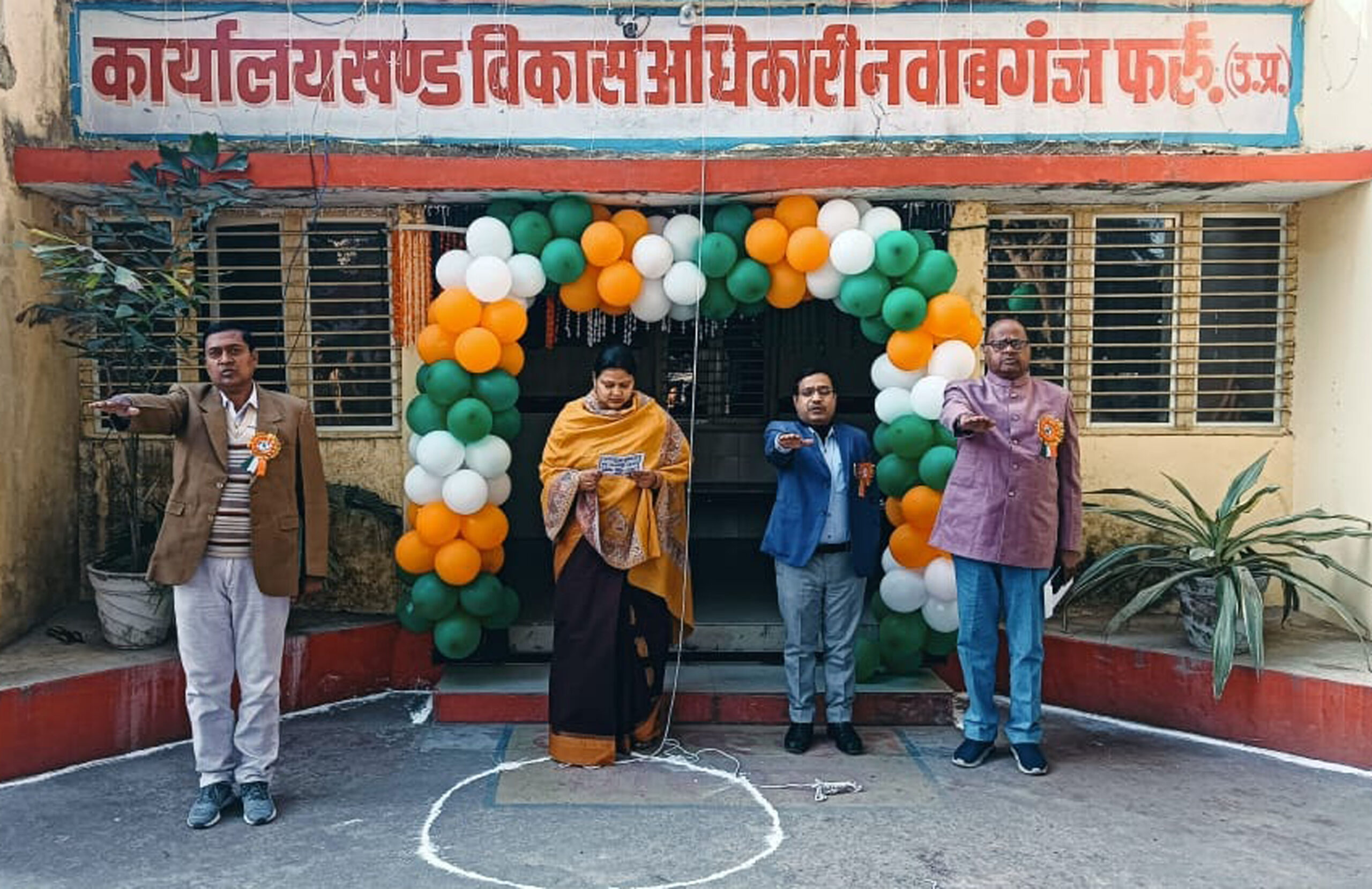 नवाबगंज, समृद्धि न्यूज। विकास खंड कार्यालय पर ब्लॉक प्रमुख ने खंड विकास अधिकारी के साथ राष्ट्रीय ध्वज फहराया तथा कर्मचारियों को कर्तव्यनिष्ठा की शपथ दिलायी।