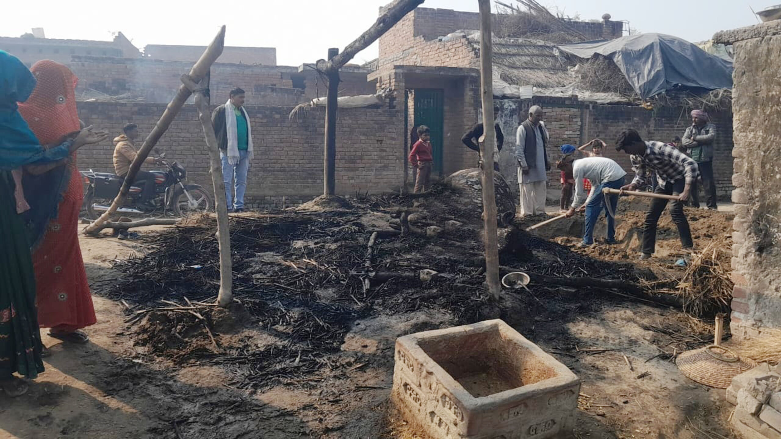 लेखपाल ने मौके पर पहुंचकर की जांच, गृहस्थी का सामान भी जला