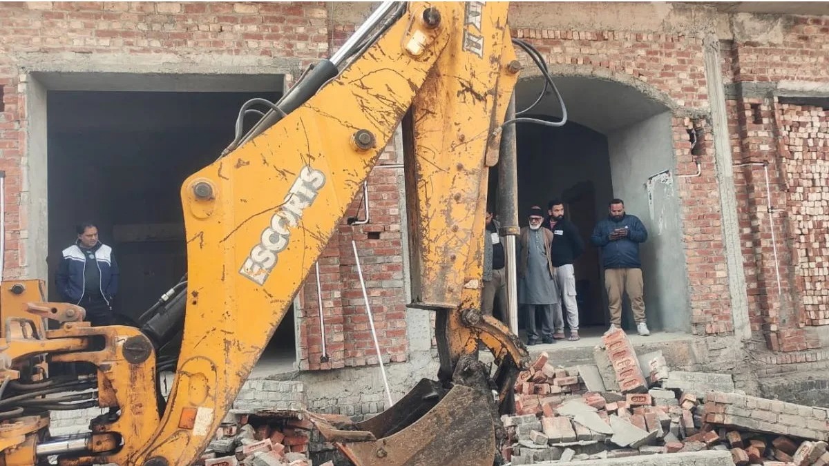 संभल के सपा सांसद जियाउर्रहमान बर्क के घर के बाहर अतिक्रमण पर चला बुलडोजर