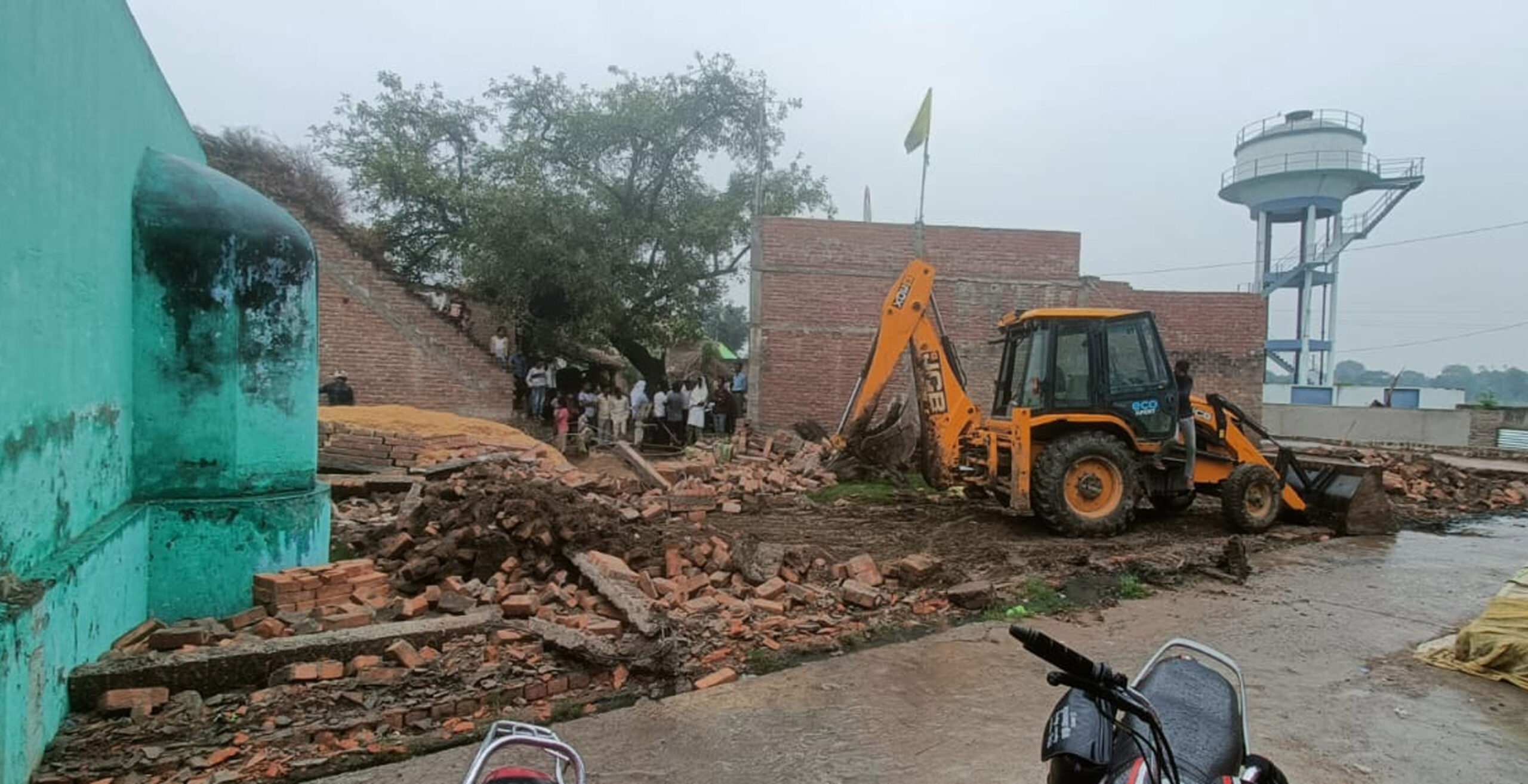 मस्जिद की दीवार पर चला बुलडोजर, सरकारी भूमि से हटाया गया अवैध निर्माण