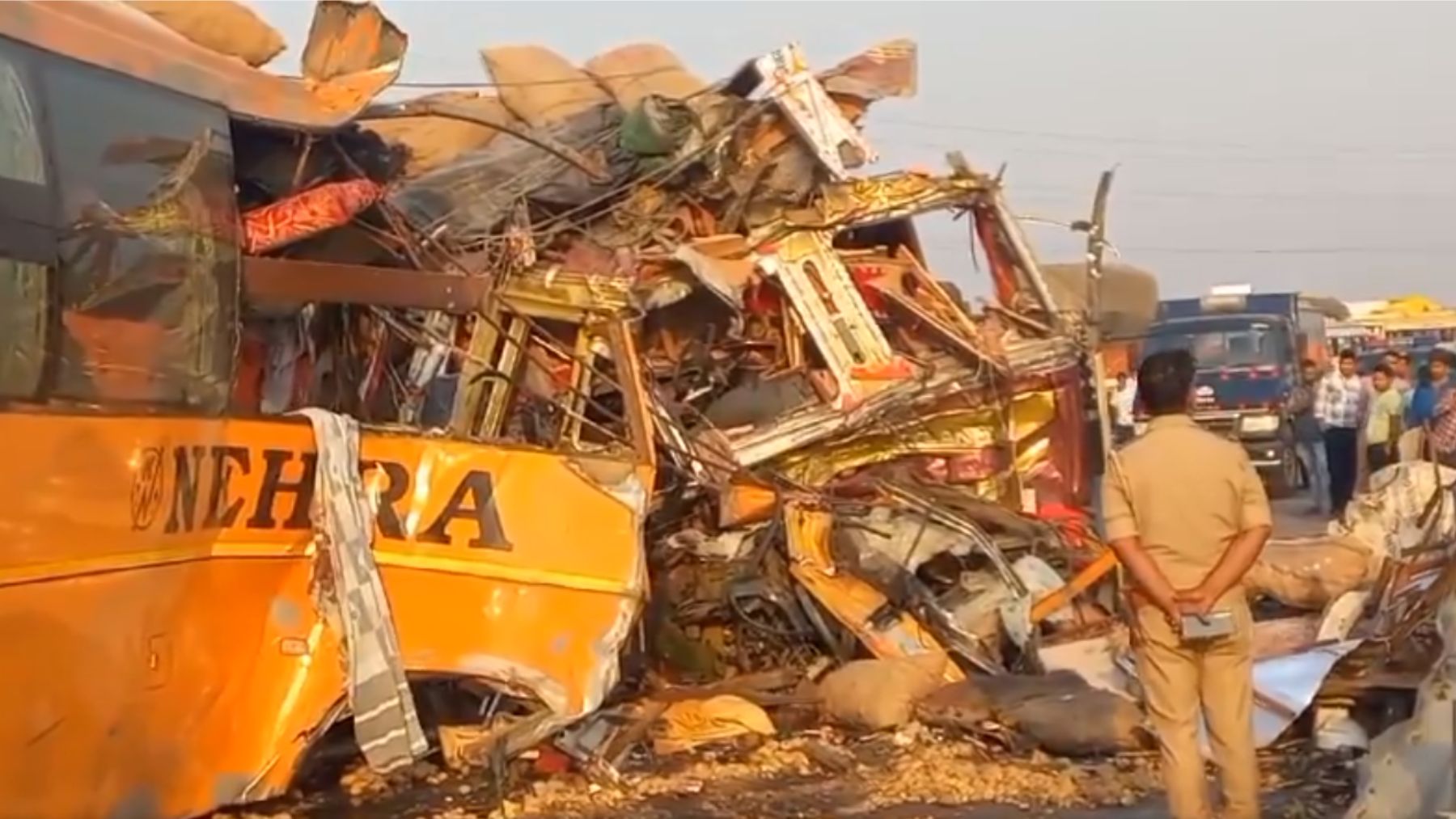 कन्नौज में मंगलवार की सुबह भीषण हादसा हुआ. यात्रियों से भरी एक बस डिवाइडर से जा टकराई. फिर बस कोएक ट्रक ने जोरदार टक्कर मार दी. हादसे में 4 लोगों की मौत हो गई, वहीं 34 लोग घायल हो गए. बस लखनऊ से आगरा की तरफ जा रही थी. हादसे की सूचना मिलते ही पुलिस की एक टीम मौके पर पहुंची और घायलों को अस्पताल में भर्ती करवाया. ठठीया क्षेत्र से गुजरने वाले लखनऊ आगरा एक्सप्रेस वे पर हुआ है. दोनों वाहनों की टक्कर इतनी भीषण थी कि बस के परखच्चे उड़ गए. घायलों को मेडिकल कॉलेज में भर्ती कराया गया है. वहीं कुछ लोगों की हालत नाजुक बनी हुई है. बस लखनऊ से आगरा की तरफ जा रही थी. ट्रक में आलू भरा था. वहीं बस स्लीपर थी. जानकारी मिलते ही अपर पुलिस अधीक्षक संसार सिंह टीम सहित मौके पर पहुंच गए. हादसे के बाद हाईवे पर लंबा जाम लग गया. हालांकि, पुलिस ने दोनों वाहनों को सड़क से हटवाया. इस दौरान मौके पर अफरातफरी की स्थिति बनी रही. रात करीब 1 से 2:00 बजे के बीच बस दो-तीन बार डगमगाई भी थी, इसको लेकर हम लोगों को आशंका हुई थी कि कहीं बस चालक नशे में तो नहीं है. लेकिन मजबूरी यह थी कि बस को बदल नहीं सकते थे. सुबह तड़के मैं सो रहा था, तभी तेज आवाज हुई. बीच की सीट खिसक कर ड्राइवर की सीट तक पहुंच गई. वह तो किस्मत अच्छी थी कि मेरी जान बच गई.