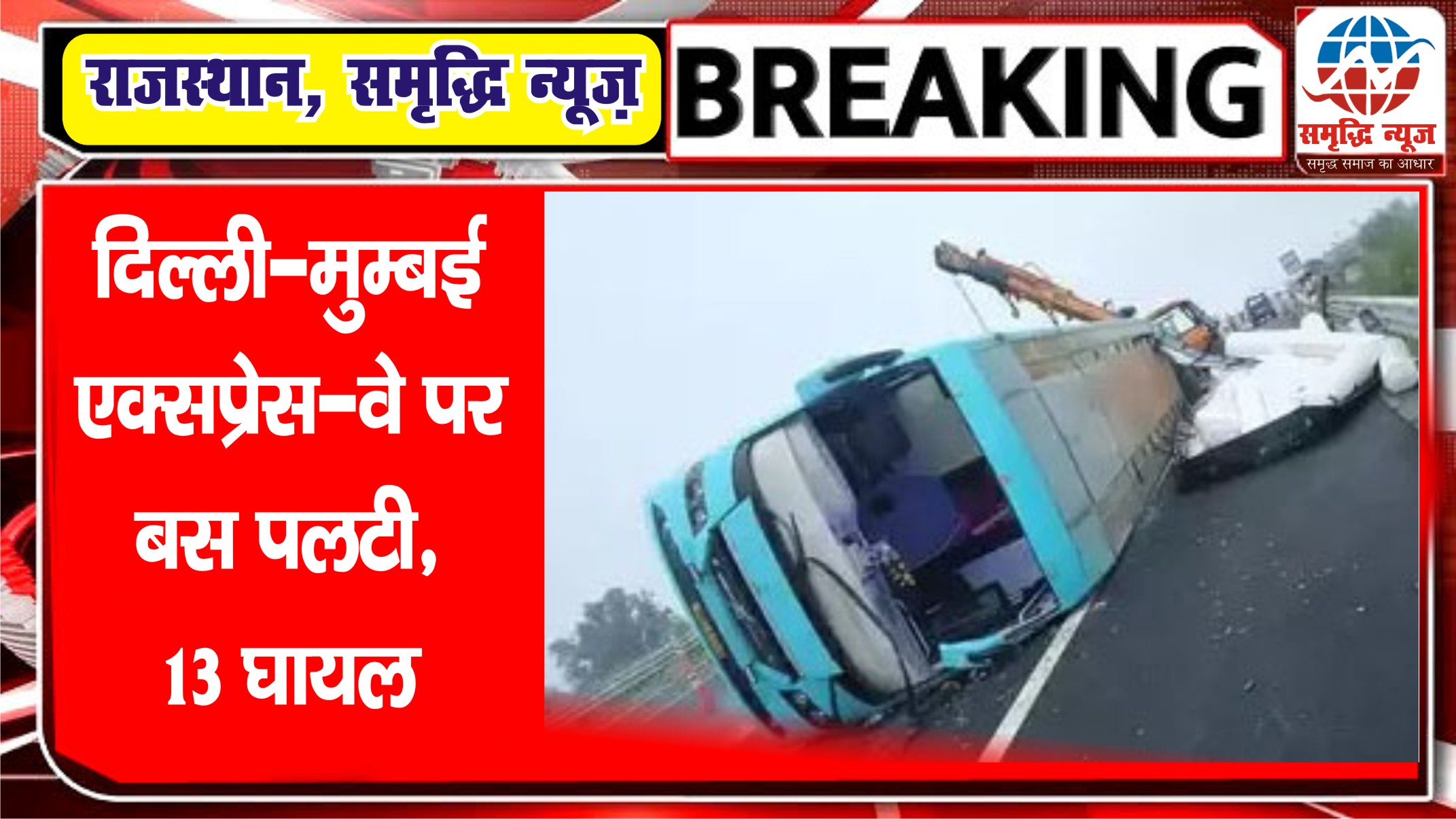 राजस्थान के दौसा जिले से गुजर रहे दिल्ली-मुंबई एक्सप्रेसवे पर बड़ा हादसा हुआ है। बताया जा रहा है कि बस एक्सप्रेस हाईवे से होती हुई जयपुर से दिल्ली की तरफ जा रही थी। इस दौरान बस का स्टेयरिंग फेल हुआ और बस बेकाबू होकर पलट गई। इस हादसे में 12 लोग घायल बताए जा रहे हैं और बस में कुल 70 लोग सवार थे।