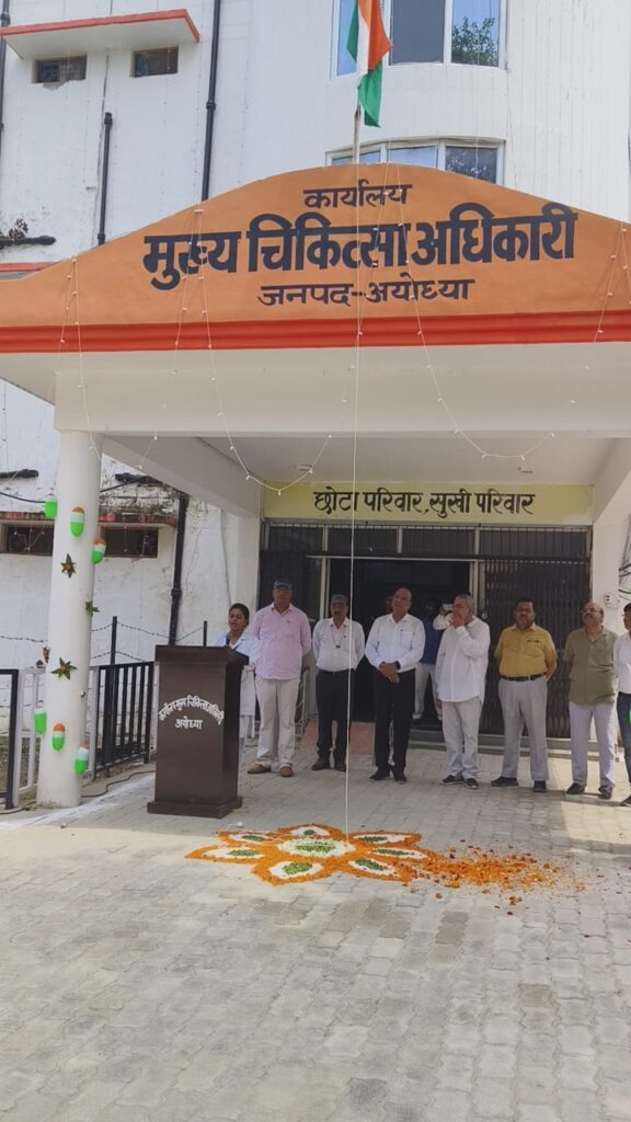 समृद्धि न्यूज़ अयोध्या।स्वतंत्रता दिवस के अवसर पर मुख्य चिकित्सा अधिकारी डॉ संजय जैन द्वारा ध्वजारोहण किया गया। इस दौरान मुख्य चिकित्सा अधिकारी कार्यालय के सभी अधिकारी तथा कर्मचारियों साथ ही एएनएम (टी.सी)में प्रशिक्षण ले रहे सभी प्रशिक्षणार्थियों ने राष्ट्रगान गाया।इस मौके पर मुख्य चिकित्सा अधिकारी डॉ जैन ने अपने संबोधन में कहा कि सभी को अपने कर्तव्य के प्रति निष्ठावान होना चाहिए।हमारा देश आज 77वे स्वतंत्रता दिवस में प्रवेश कर रहा है।इस अवसर पर उन्होंने सभी को शुभकामनाएं दी और इसके साथ ही वह मौजूद सभी को राष्ट्रध्वज का सम्मान करने और राष्ट्र की सारी संपत्ति को अपनी संपत्ति समझ कर उसकी सुरक्षा राष्ट्र की सुरक्षा के बराबर समझने की नसीहत दी।इसके साथ ही कार्यक्रम में उपस्थित सभी अधिकारियों एवं कर्मचारियों ने स्वतंत्रता दिवस के अवसर पर अपने विचार रखें‌ और एएनएम (टी.सी) प्रशिक्षणार्थियों ने देशप्रेम में गीत गाए।कार्यक्रम के अंत में मुख्य चिकित्सा अधिकारी डॉ जैन ने सभी के प्रति आभार व्यक्त किया।