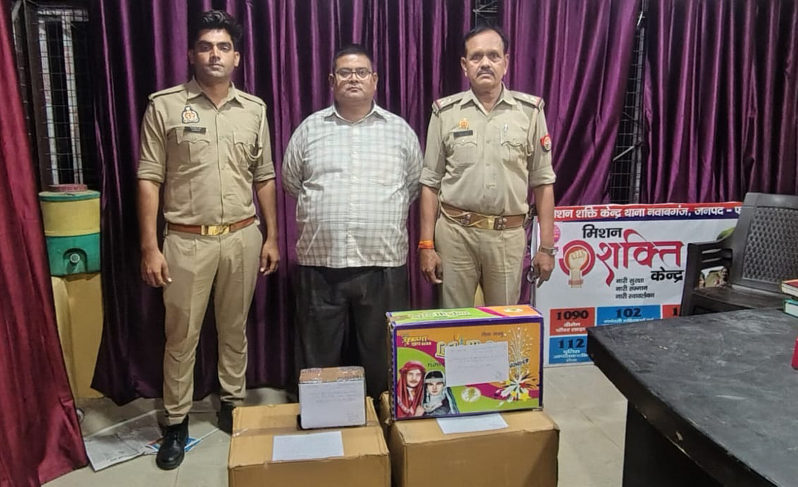 जानकारी के अनुसार थाना नवाबगंज पुलिस को मुखबिर से सूचना प्राप्त हुई कि एक व्यक्ति ने अपनी दुकान में अवैध पटाखे रखे हुए हैं। मुखबिर की सूचना पर थाना नवाबगंज पुलिस द्वारा उपरोक्त दुकान से तीन अदद कार्टून जिसमें कलर स्पाकल्र्स के ८० बंडल व दूसरे कार्टून में दीपक फुलझड़ी के १०६ बंडल व तीसरे कार्टून में लैला मजनू पटाखा के ३२ पैकेट तथा एक बंडल पटाखा अशोक बेस्ट क्वालिटी क्रेकर्स ९६ पैकेट के साथ विमलेश कुमार उपरोक्त को गिरफ्तार किया है। गिरफ्तारी के आधार पर पुलिस ने थाना हाजा पर मु0अ0सं0 २५८/२५ धारा-5/9ख (1) विस्फोटक अधिनियम 1884 के तहत मुकदमा पंजीकृत किया गया है।