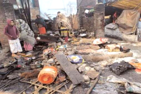 रात शॉर्टसर्किट से मूंगफली विक्रेता की दुकान में लगी आग