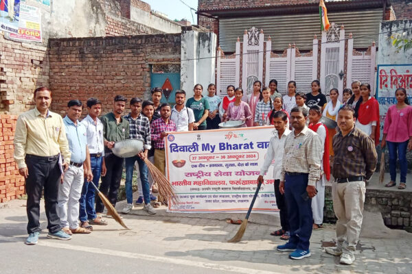 फर्रुखाबाद, समृद्धि न्यूज। दिवाली माई भारत वाली के तत्वधान में भारतीय महाविद्यालय के राष्ट्रीय सेवा योजना इकाई छात्र-छात्राओं द्वारा नगर के मुख्य बाजार में सफाई अभियान चलाया गया। कार्यक्रम का शुभारंभ महाविद्यालय के प्राचार्य डॉ0 रमन प्रकाश द्वारा किया गया एवं महाविद्यालय परिवार के सदस्य डॉ0 विजय, अशोक मिश्रा, विवेक शुक्ला, बलराम सिंह, सर्जेश आदि…