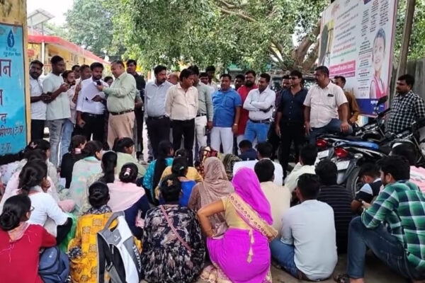 क्रॉप सर्वे न करने को लेकर पंचायत सहायकों ने दिया धरना
