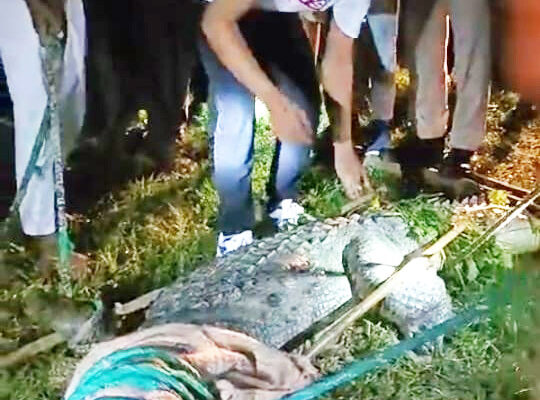 खेत में मगरमच्छ निकलने से हड़कम्प मच गया