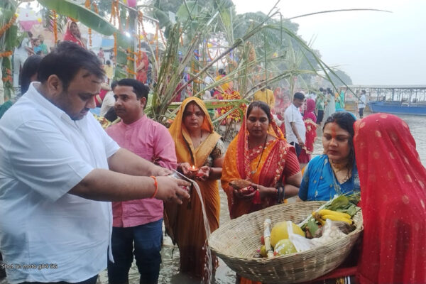 डॉ0 अनीता रंजन समेत व्रती महिलाओं ने अस्ताचलगामी सूर्य को दिया अर्घ्य