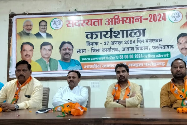 फर्रुखाबाद, समृद्धि न्यूज। भाजपा फतेहगढ़ मण्डल की बैठक पार्टी कार्यालय आवास विकास पर जिलाध्यक्ष रुपेश गुप्ता की अध्यक्षता में सम्पन्न हुई। साथ ही सदस्यता अभियान कार्यशाला का आयोजन हुआ। कार्यशाला में सभी मण्डल की टीम व मोर्चा के अध्यक्ष एवं शक्ति केंद्र संयोजक व प्रभारी एवं बूथ अध्यक्षों ने भाग लिया। लक्ष्य के अनुसार सभी…
