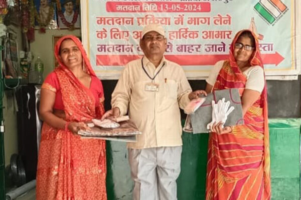 रसोइयों को चुनाव ड्यूटी के लिए वितरित किये गये साड़ी, ग्लब्स, स्प्रिन