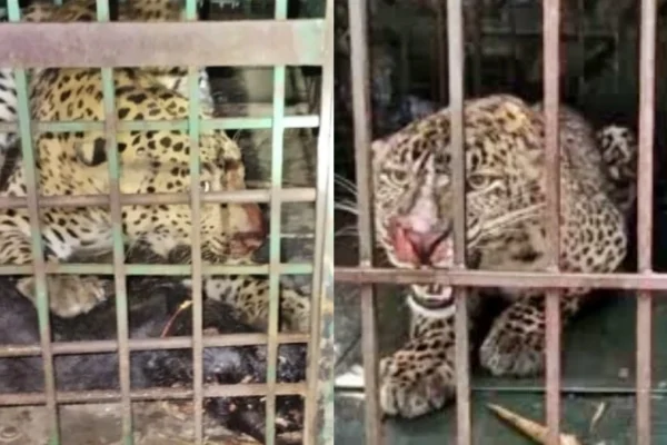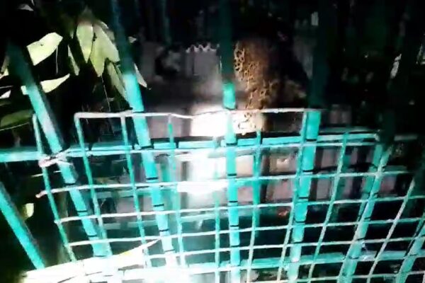 बकरी का शिकार करने आया तेंदुआ पिंजरे में हुआ कैद
