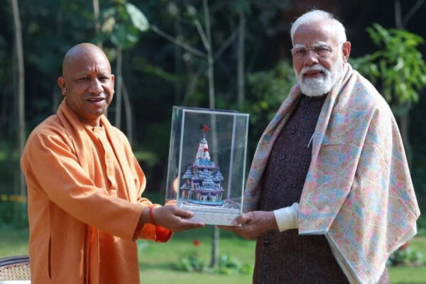 CM योगी ने PM मोदी को दिया सोने-चांदी और हीरों से जड़ा राम मंदिर