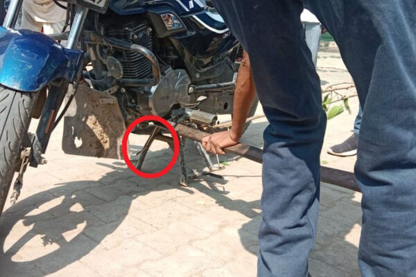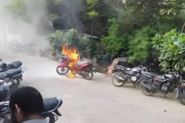 मुकदमे की पैरवी करने आये युवक की बाइक में लगी आग